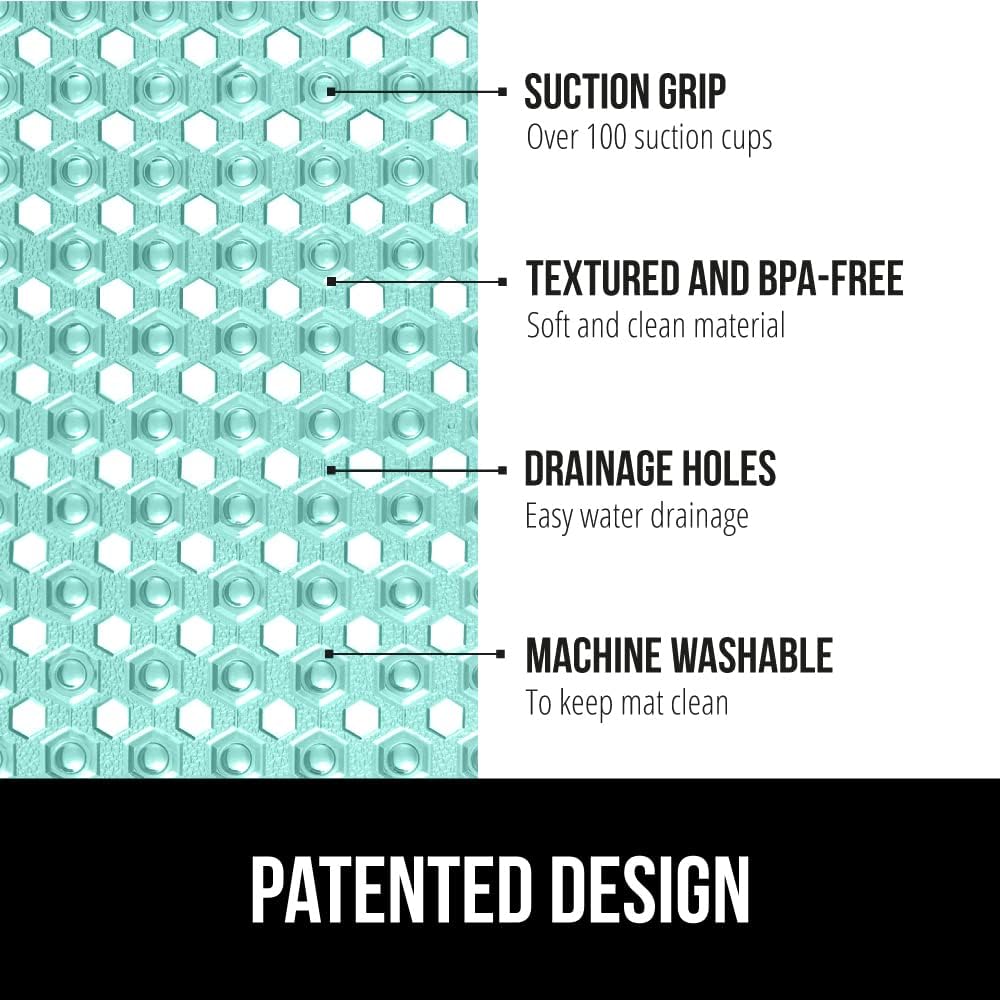 • PATENTED DESIGN WITH POWERFUL SUCTION GRIP: a shower mat designed to securely stay in place; the patented mat features hundreds of suction cups that effectively help secure the mat to your tub or shower floor