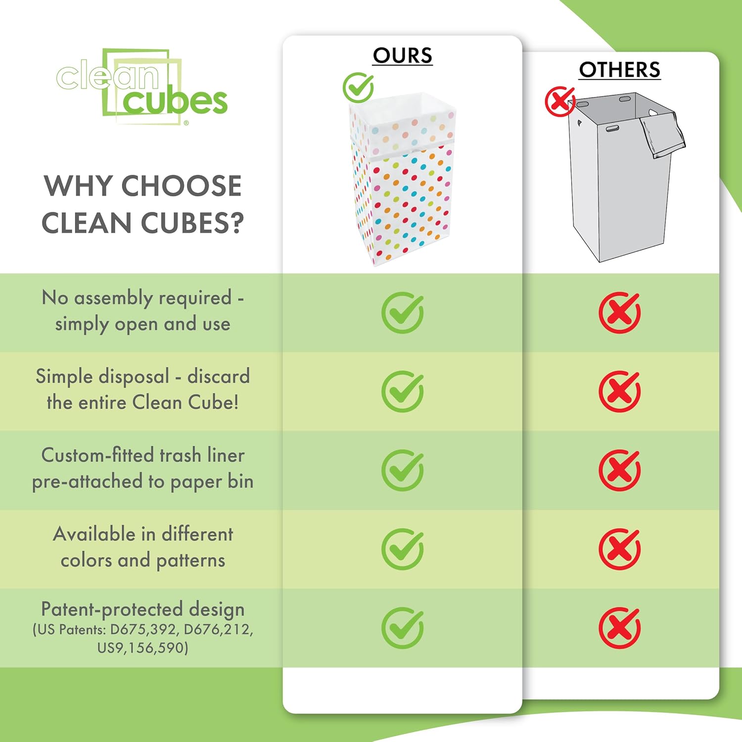 • ✅【EFFORTLESS CLEANUP & DISPOSAL】Simply unfold, use, and toss — keep your event clean and mess-free without extra effort. Clean Cubes are disposable recycling bins and trash cans with a patent-protected design and custom-fitted trash liner in each bin.