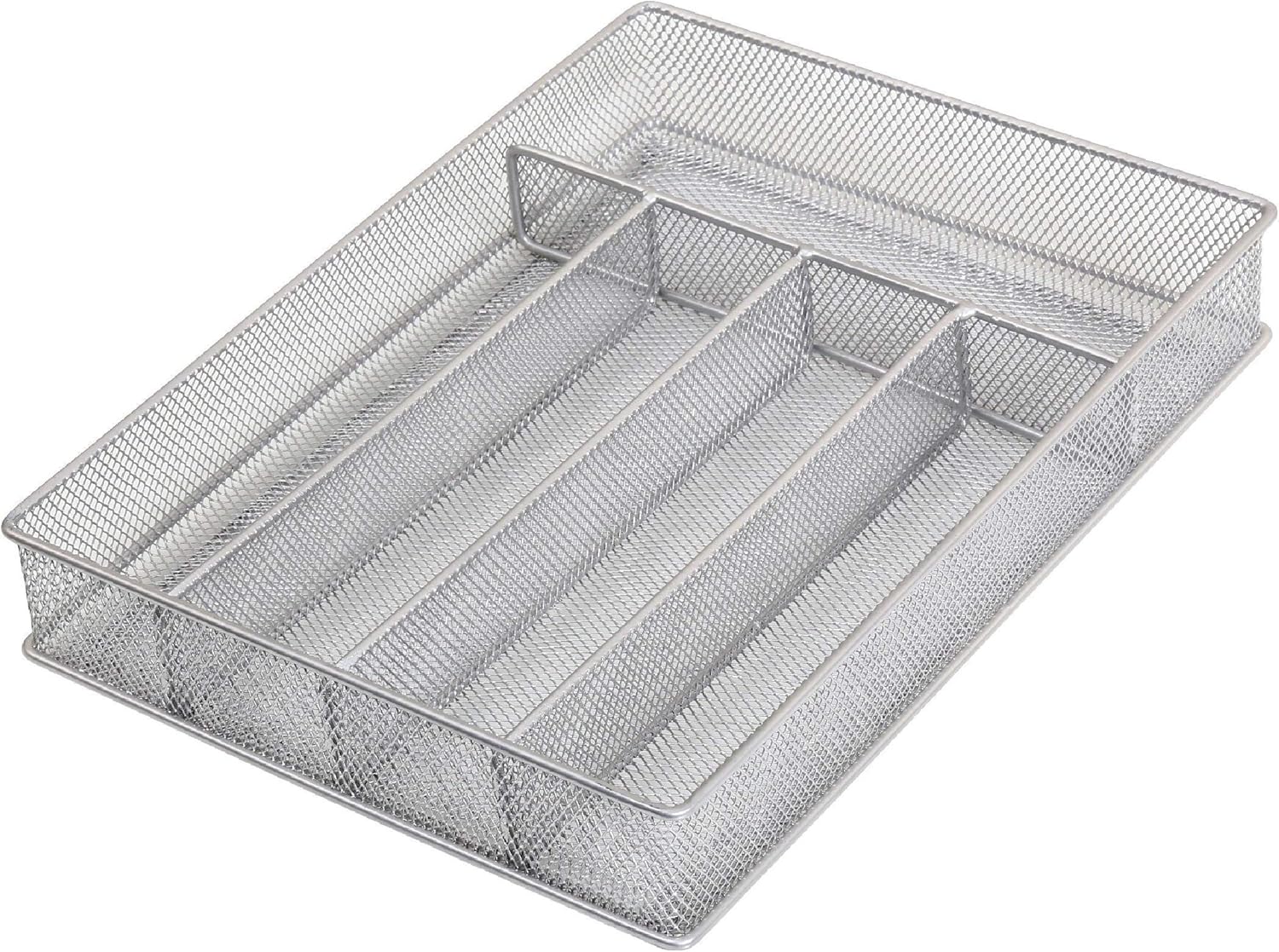 YBM Home Metal Silverware Organizer for In-Drawer Cutlery Storage, 5 Compartment Mesh Cutlery Flatware Tray Sorts Kitchen Utensils, Great for Office Supplies 1133s