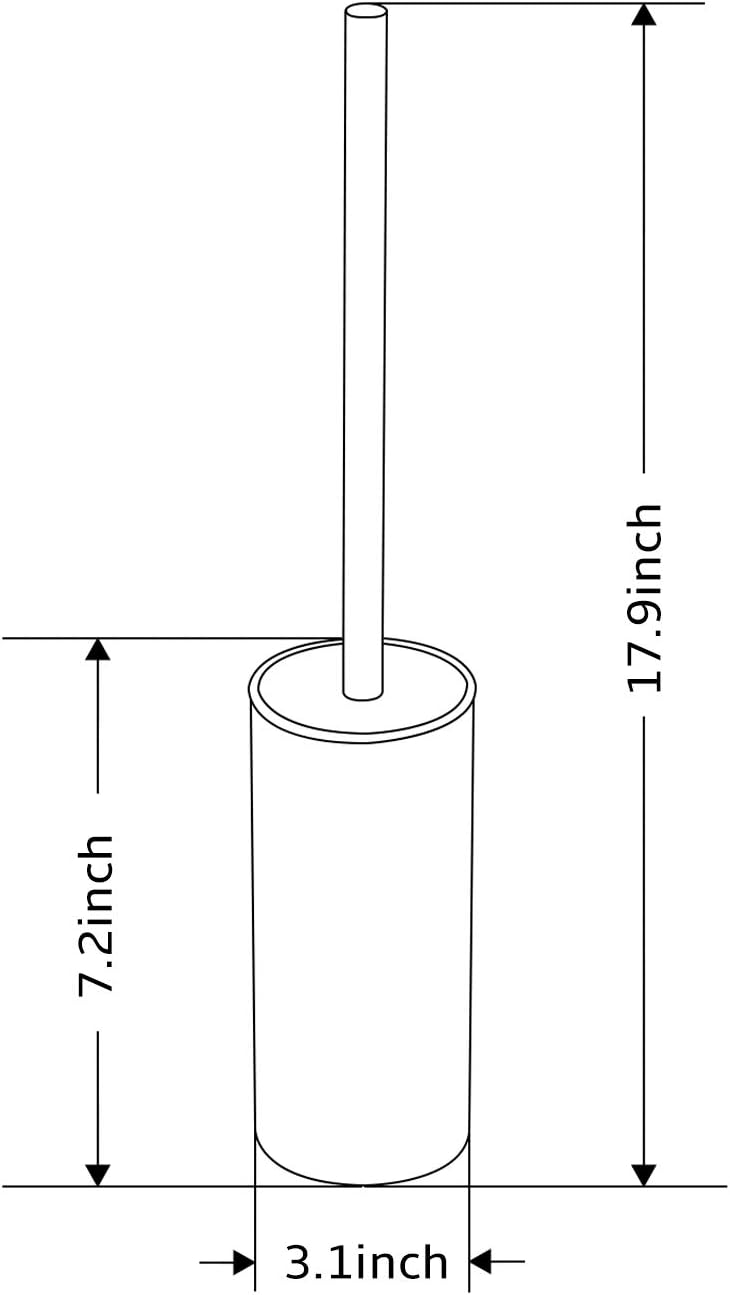 • This modern, round ball container and brush is 3.15 x 3.15 x 7.09 inches; it's just the right size to fit into an out-of-the way nook or cranny, behind the bathroom garbage can, or placed near the back of the toilet bowl
