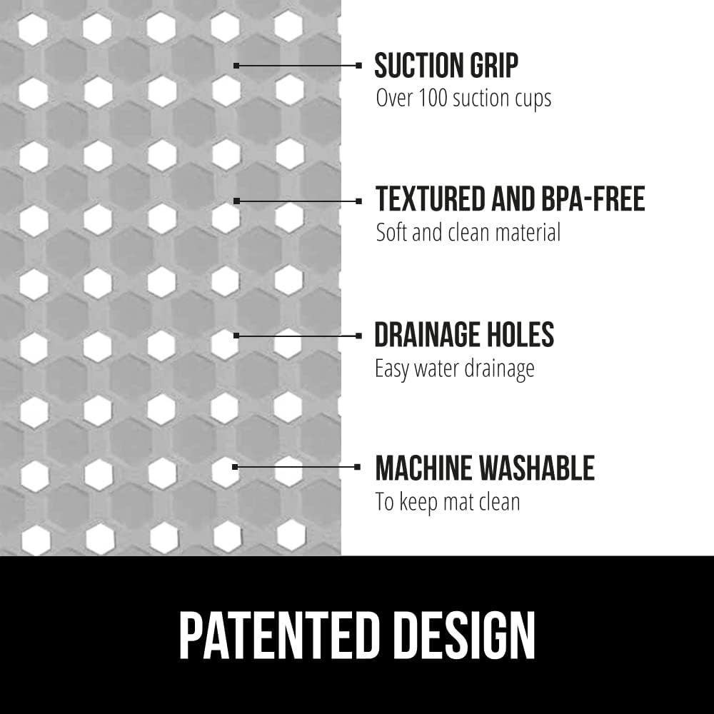 • PATENTED DESIGN WITH POWERFUL SUCTION GRIP: a shower mat designed to securely stay in place; the patented mat features hundreds of suction cups that effectively help secure the mat to your tub or shower floor