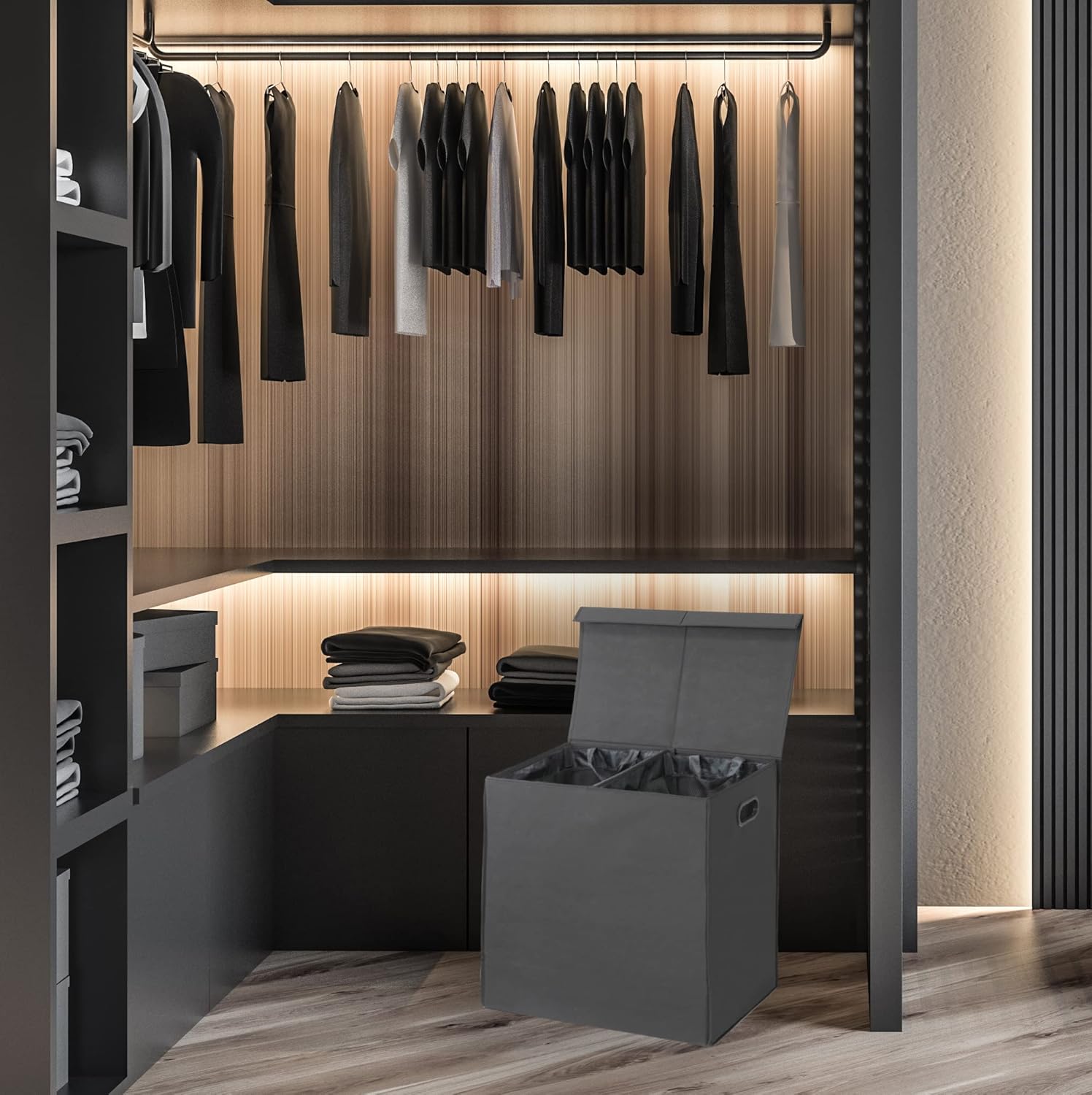Simple Houseware Double Laundry Hamper with Lid and Removable Laundry Bags, Dark Grey