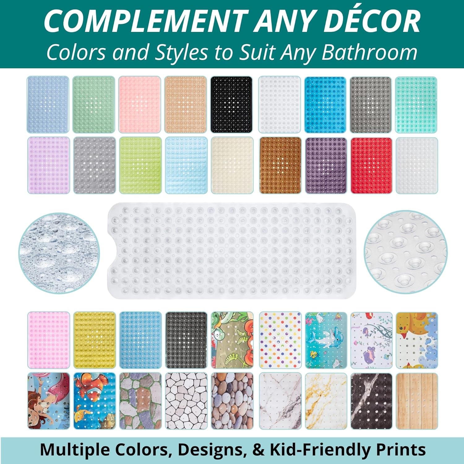 • Enjoy 360-degree Protection In Or Out Of Your Bathtub: with a premium manufacture bathmat, made of top standard anti slip material. It is a MAXIMUM grip tub/shower mat with 200 well-placed suction cups, for max sticking capacity.