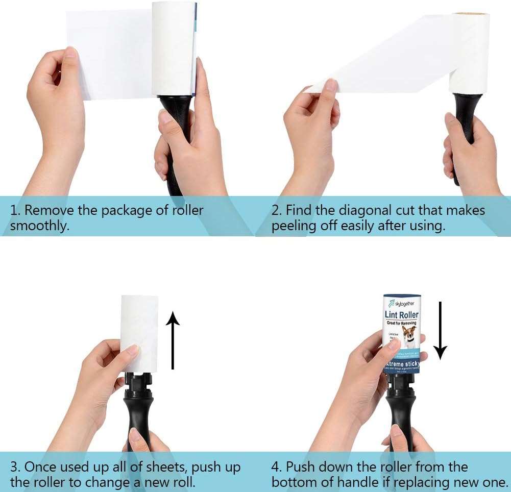 • 【Diagonal Tear Sheets】: Featuring a diagonal tear design, our lint roller sheets are easy to remove. Simply tear away the used sheets to reveal a fresh adhesive layer