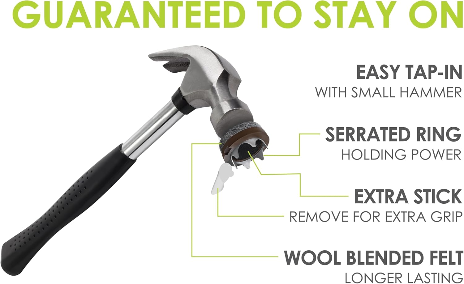 • Quick & easy tap on installation – Includes 8 gorillafelt chair feet pads that install in seconds with the tap of a hammer, simply clean the bottom of furniture leg, peel off adhesive backing from glide, position on furniture and then tap in felt pads.