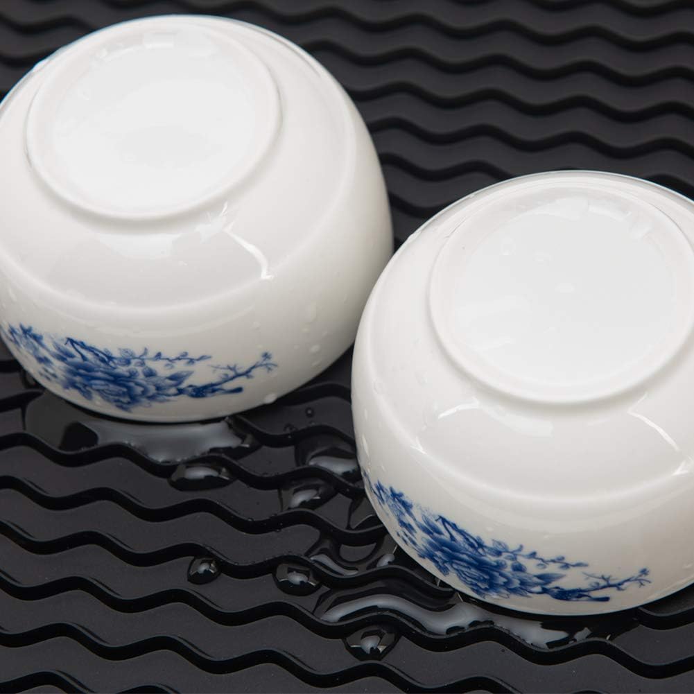 ZLR 2 Pcs Silicone Dish Drying Mats for Kitchen Counter, Eco-Friendly Fast Dry Dish Mat, Easy Clean Multi Usage Drying Matt, Heat Resistant Trivet, 12" x 16" Large, Black