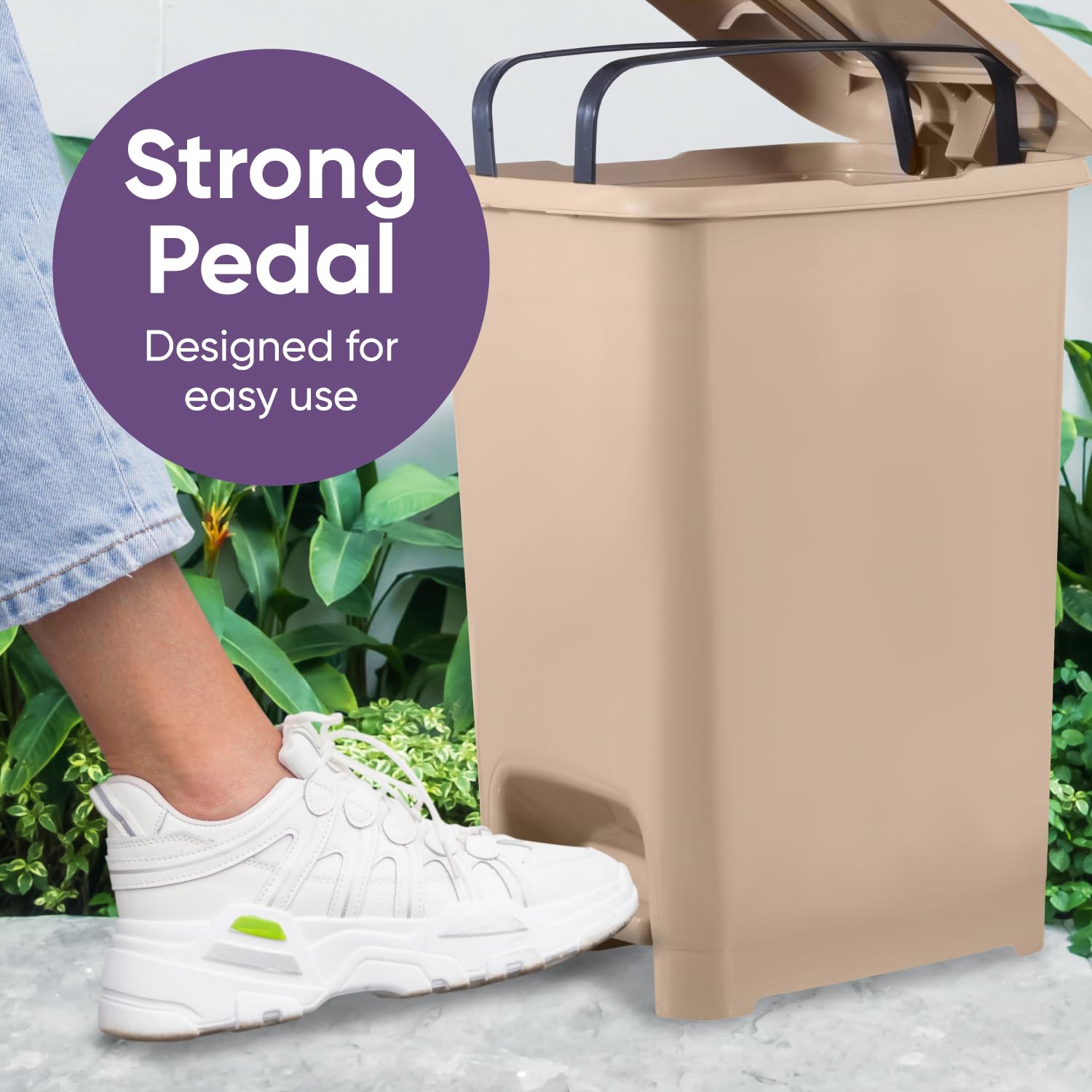 Superio Slim Step On Trash Can, Beige Waste Bin with Foot Pedal Lid 26 Liter, Kitchen, Under Desk, Office, Bedroom, Bathroom (1, 6.5 Gallon)