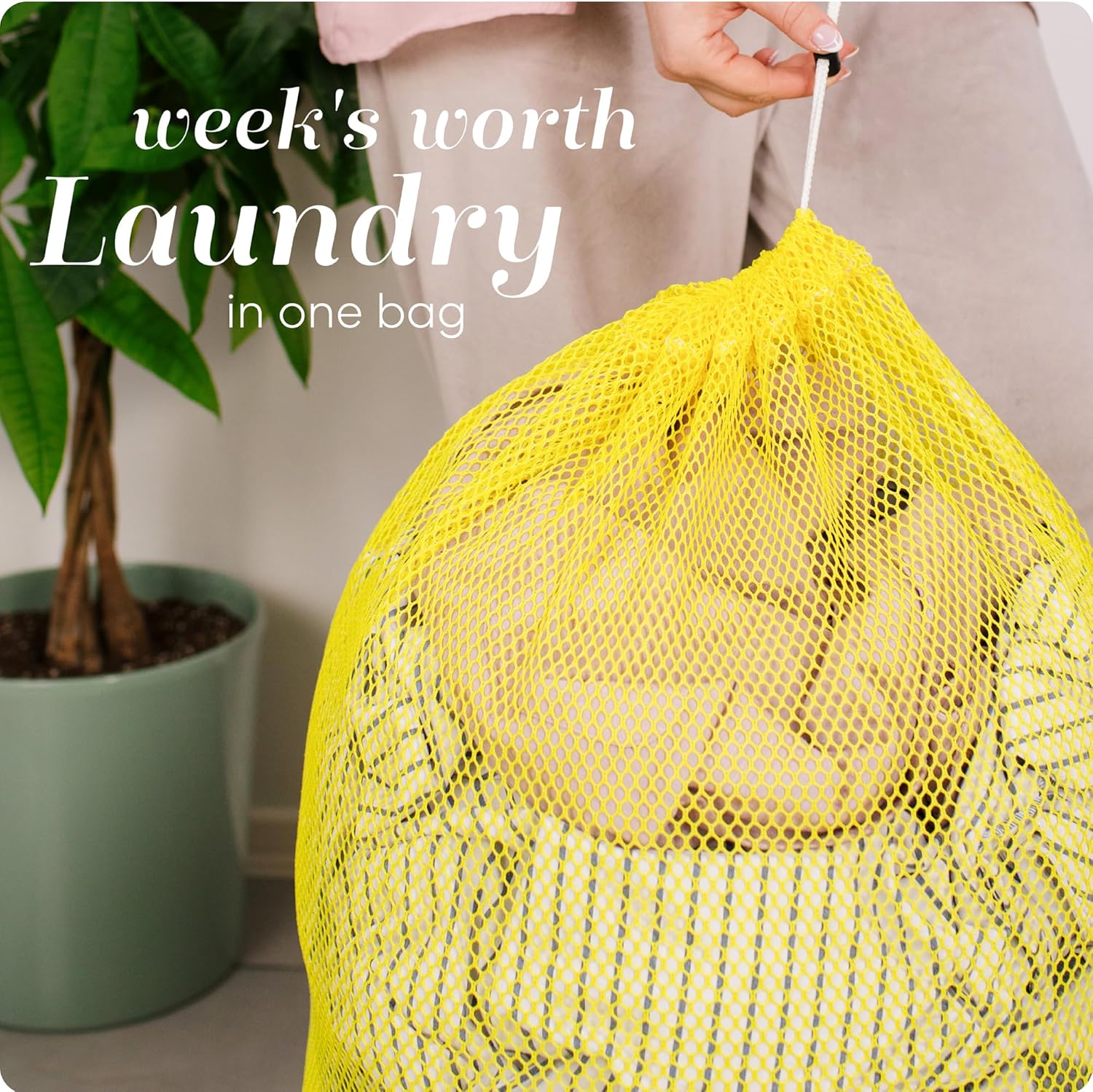Handy Laundry Mesh XL Laundry Bag - Durable, Machine Washable with Secure Drawstring Closure - Perfect for College Dorms, Laundromats, Apartments (Yellow, Large 24" x 36")