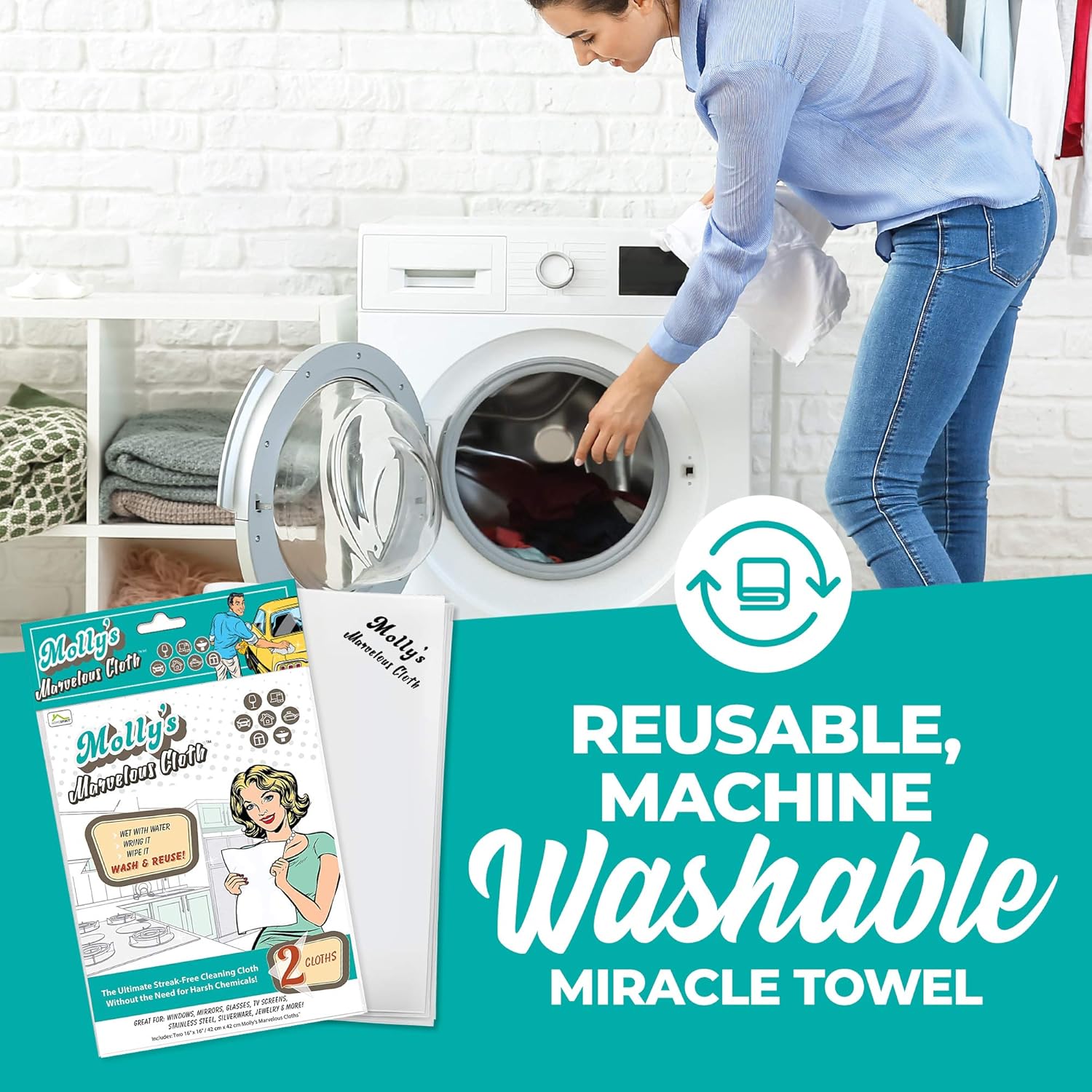 Molly's Marvelous Cloth, Streak-Free, Lint-Free Microfiber Cleaning Cloth, Polishing Cloth for Glass, Stainless Steel, Use for Kitchen, Bath, Cars, Detailing, Reusable(17" by 16") (2pk, White)