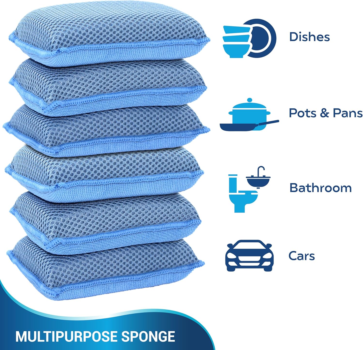 Miracle Microfiber Kitchen Sponge by Scrub-It (6 Pack) - Non-Scratch Heavy Duty Dishwashing Cleaning sponges- Machine Washable - (Blue)