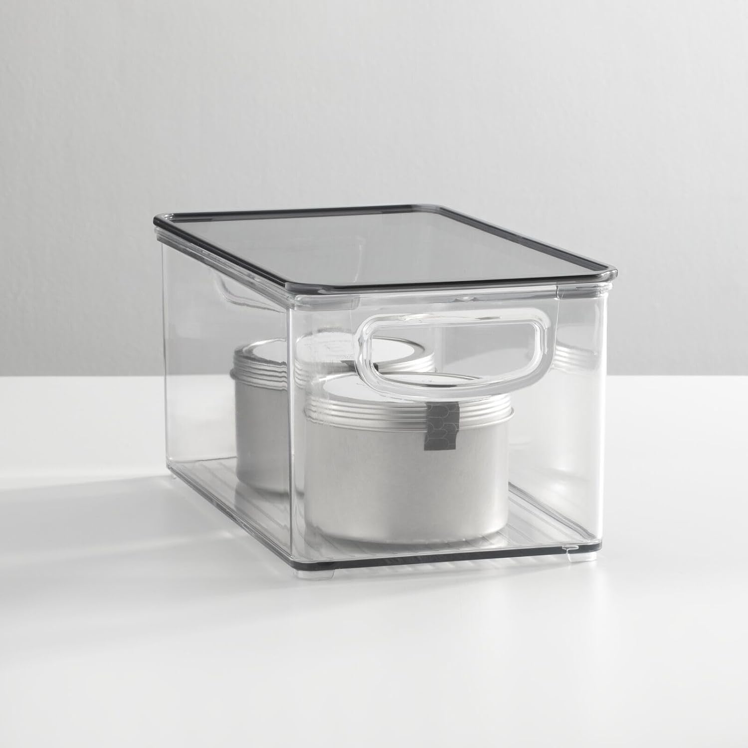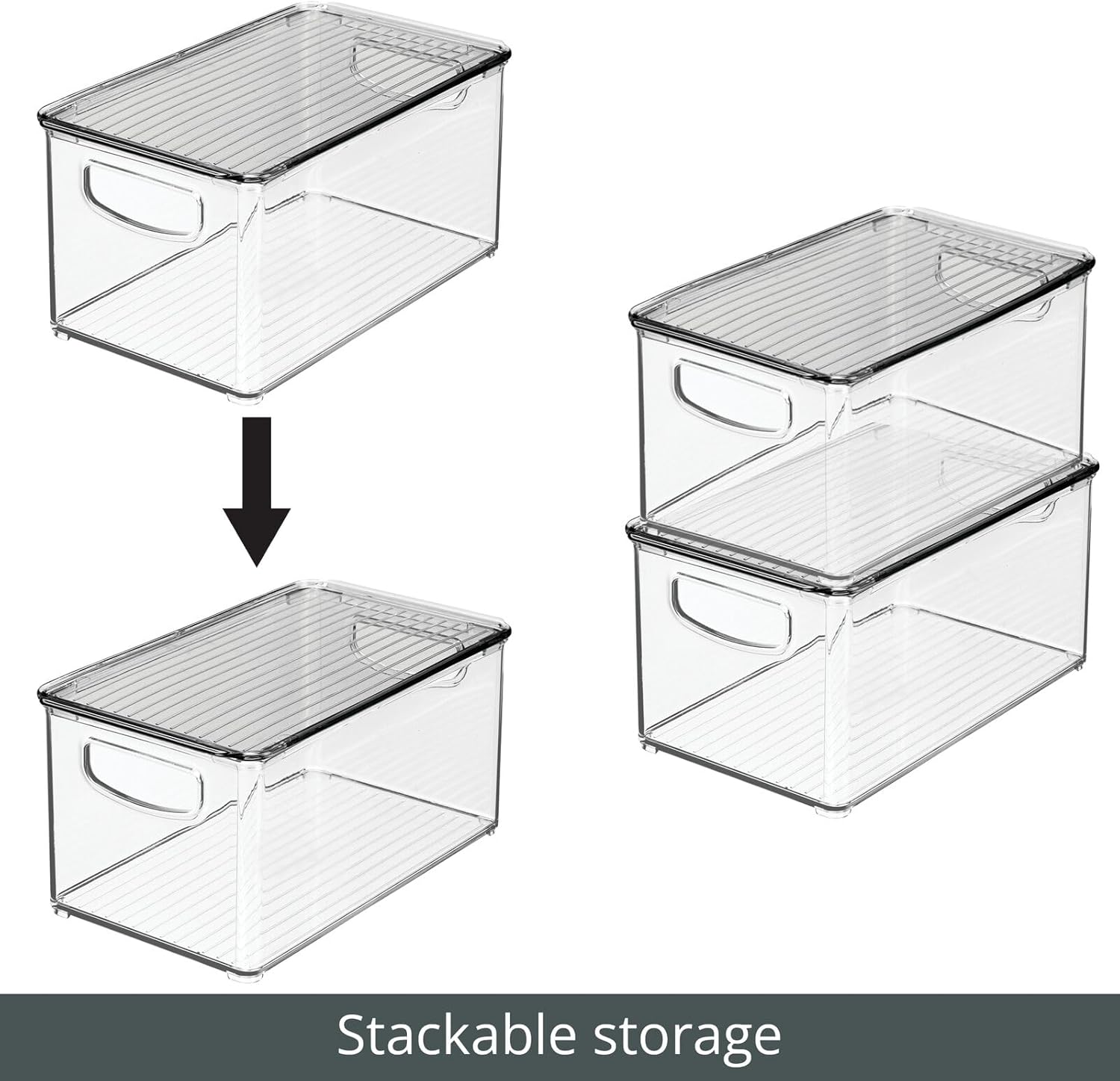 mDesign Plastic Deep Storage Bin Box Container with Lid and Built-In Handles - Organization for Fruit, Snacks, or Food in Kitchen Pantry, Cabinet, Cupboard, Ligne Collection, 6 Pack, Clear/Smoke Gray