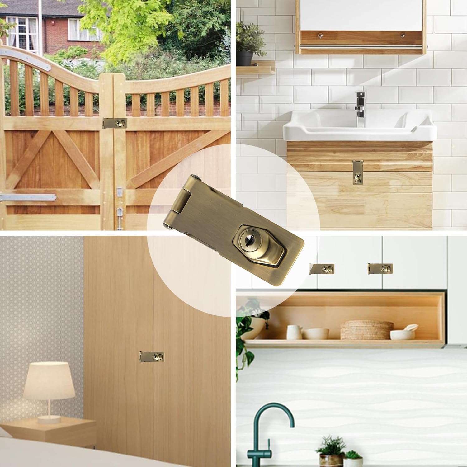 Alise Keyed Hasp Lock,4 Inch Safety Packlock Clasp Hasp Lock Latch with Lock,Door Hinge Lock with Keys Keyed Locking Hasp for Cabinets Closets Doors,Bronze