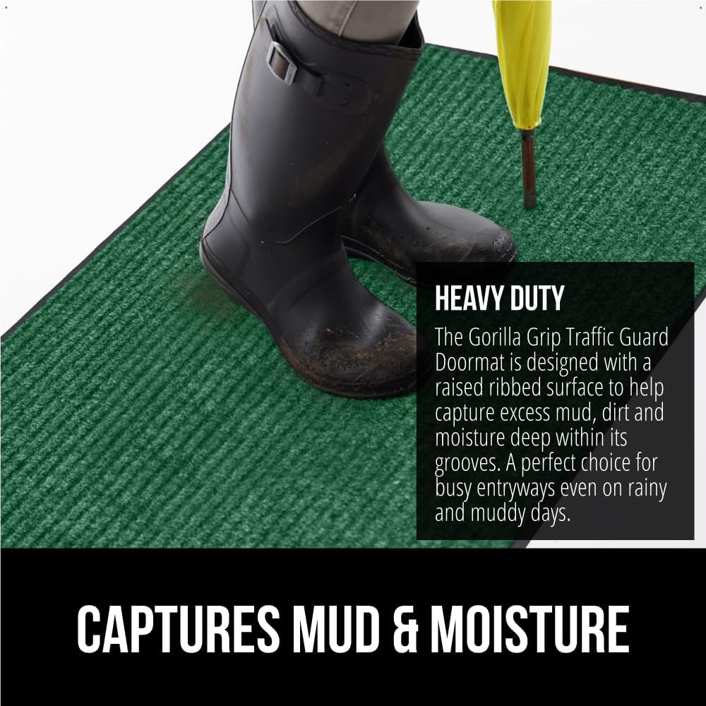GORILLA GRIP Traffic Guard Door Mat, 47x35, Heavy Duty Welcome Mats, Commercial Office Space Doormat, Waterproof, Fade Resistant, Strong Rubber Backing, Low Profile, Shoe and Boot Scraper, Green