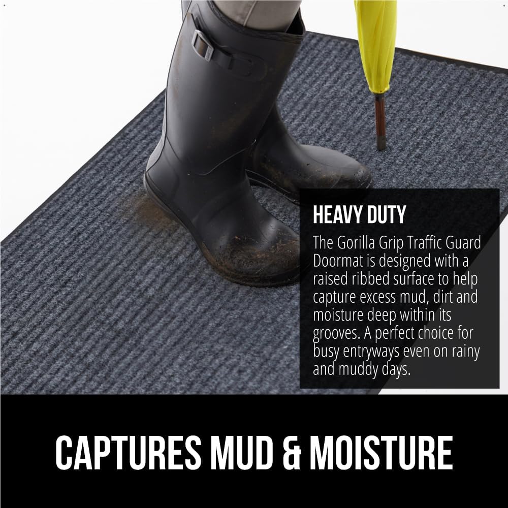GORILLA GRIP Traffic Guard Door Mat, 60x36, Heavy Duty Welcome Mats, Commercial Office Space Doormat, Waterproof, Fade Resistant, Strong Rubber Backing, Low Profile, Shoe and Boot Scraper, Gray