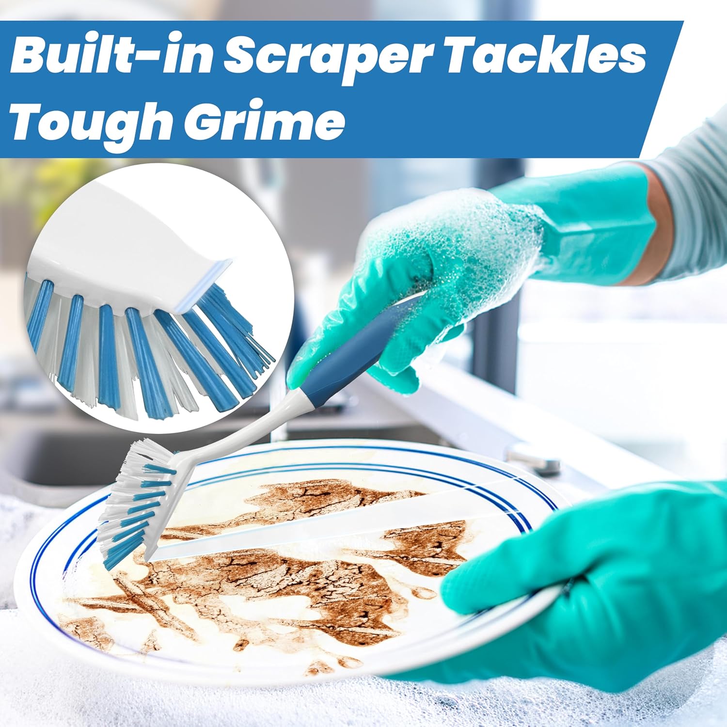 PHYEX 2-Pack Dish Brushes with Scraper, Durable Nylon Bristles Kitchen Scrub Brush, Dish Scrubber with Handle for Pans, Sink, Bathroom