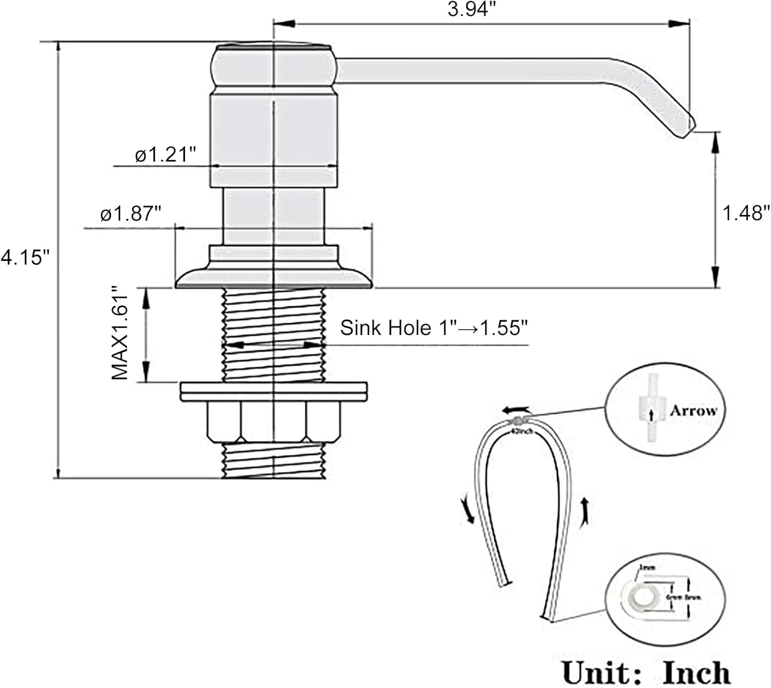 • 【EASY TO INSTALL】Include the Detailed installation instructions, no plumber is required, finishing DIY installation only takes a few minutes. And enjoy your new style soap dispenser 【Fits 1 to 1.55 inch Hole】