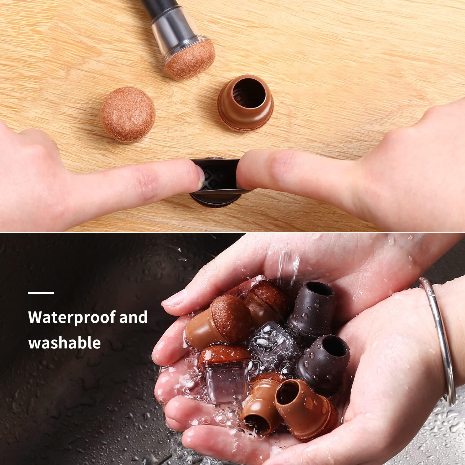 - ☛【Not Easy To Fall Off 】-Our chair leg covers is upgraded and thickened bottom wrapped ( up to 0.4”/10mm ) .Chair leg socks is made of premium thermo plastic rubber material, which is durable and stretchable. They are easy to slip-on, no need to stick, simple to wrap and not easy to fall off. NOTE: MAIN IMAGE MAYBE LOOKS LIKE BLACK, BUT THE COLOR OF OUR PRODUCTS IS ACTUALLY DARK BROWN, NOT BLACK. IF YOU WANT TO ORDER BLACK, PLEASE CHOOSE COLOR: BLACK.