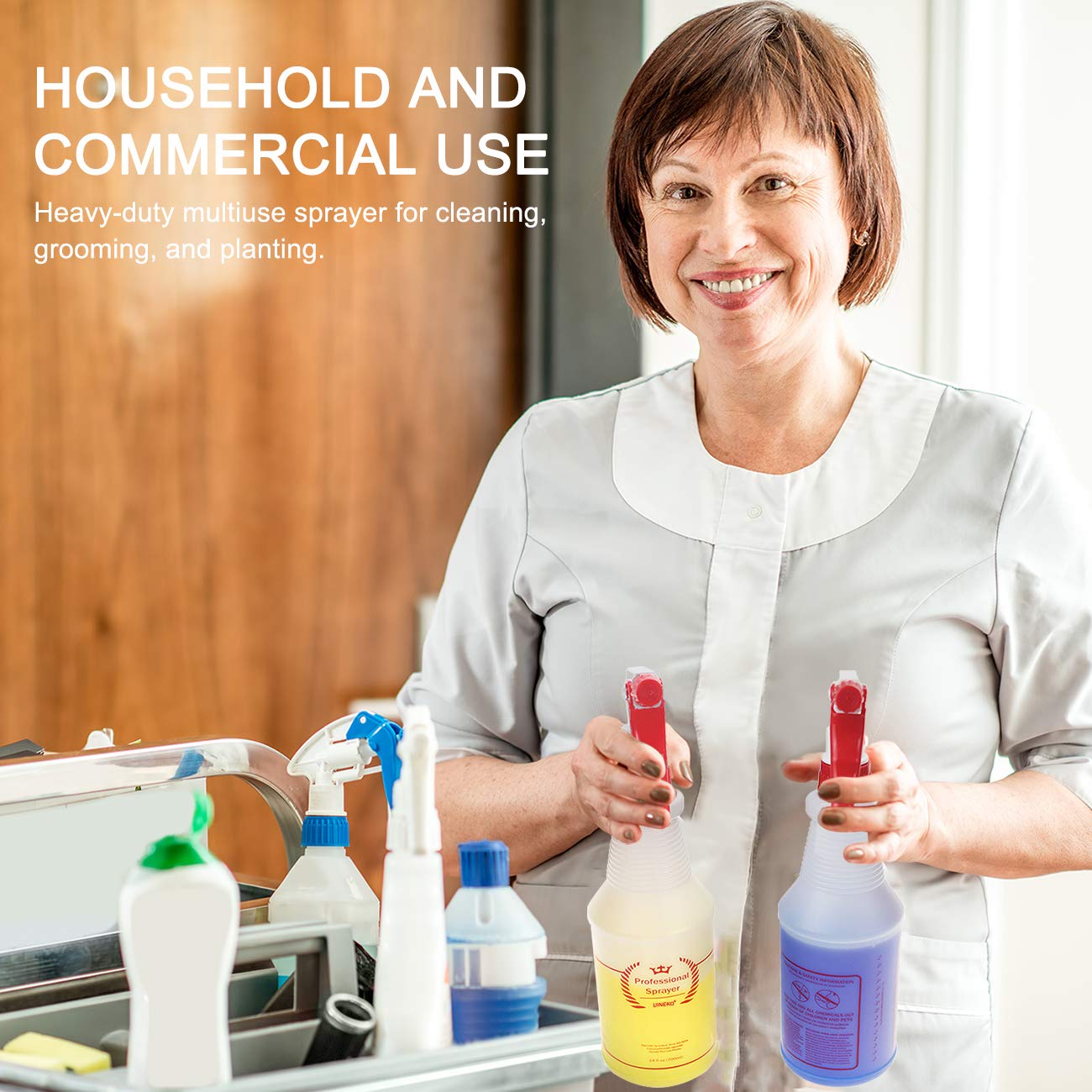 - HOUSEHOLD-COMMERCIAL-INDUSTRIAL USES - Our plastic spray bottles is for multi purpose uses, each bottle is BPA-free, use them for food spraying, cleaning solutions around the house, pet, cat, lawn and garden, misting and watering plants, succulents, herbs, ironing, laundry, car cleaning, janitorial. Make your own homemade diy cleaner mister or just use with water to cool yourself.