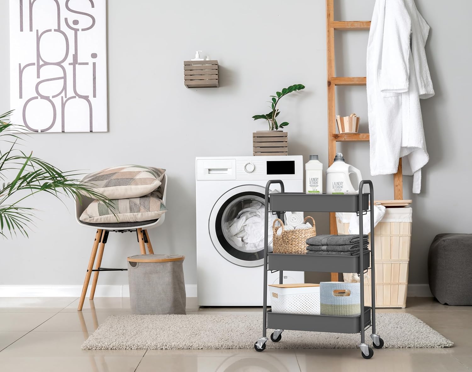 CAXXA 3-Tier Rolling Metal Storage Organizer - Mobile Utility Cart with Caster Wheels, Gray