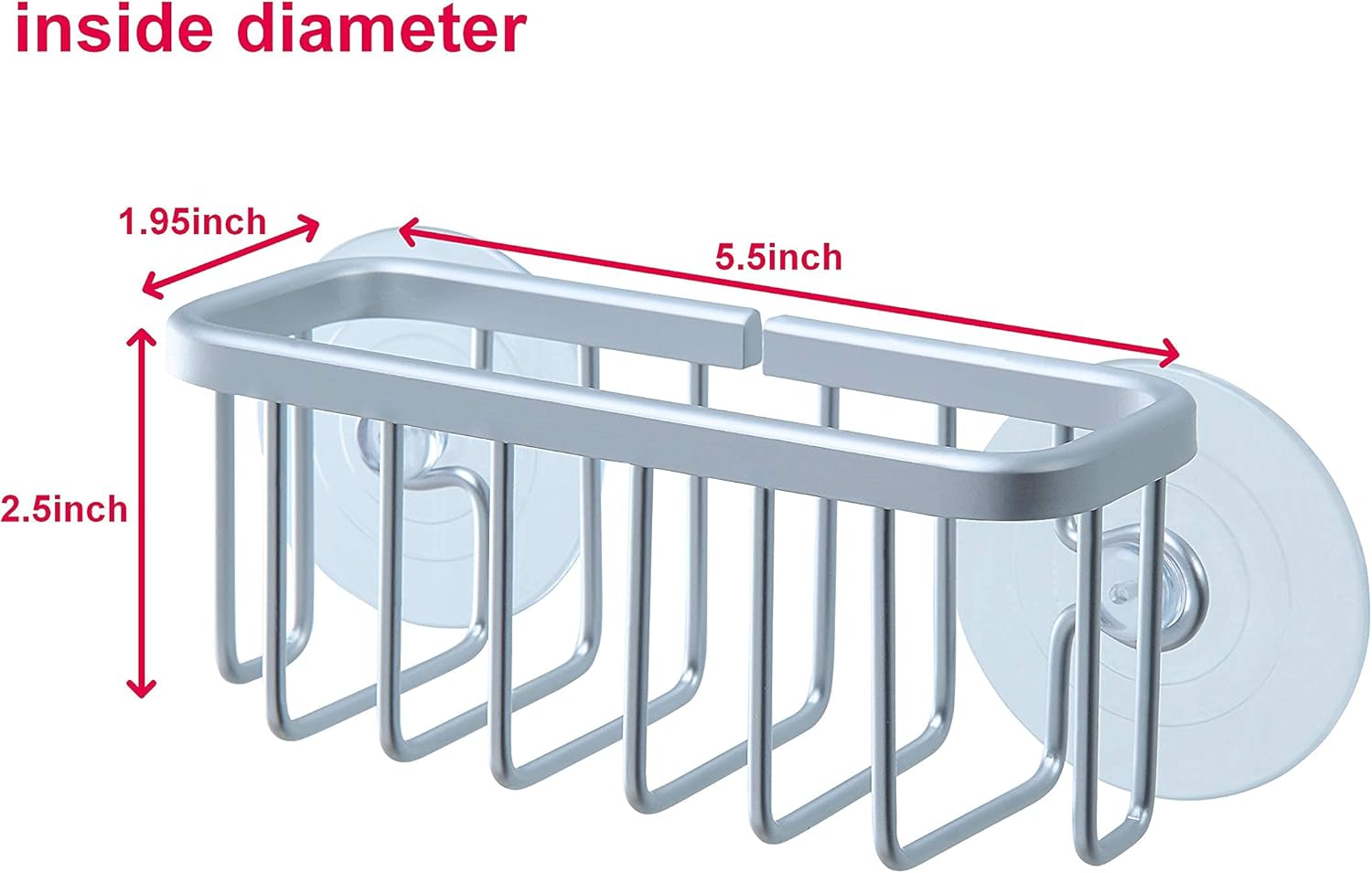 SunnyPoint NeverRust Kitchen Sink Suction Holder for Sponges, Scrubbers, Soap, Kitchen, Bathroom, 6"L x 2.36" W x 2.56"H , Aluminum (Mat Silver, Set of 1)