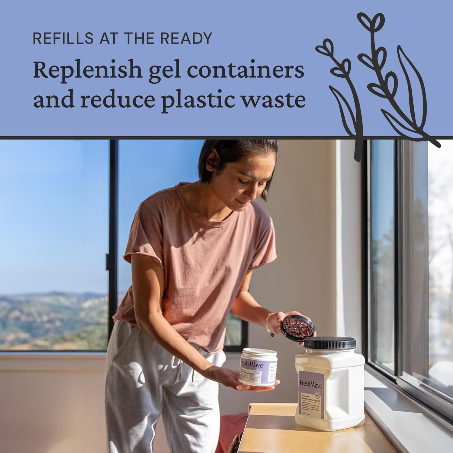 • Refill your Gel Jars and place wherever odors are strongest, like bathrooms, baby rooms, home gyms, and more.