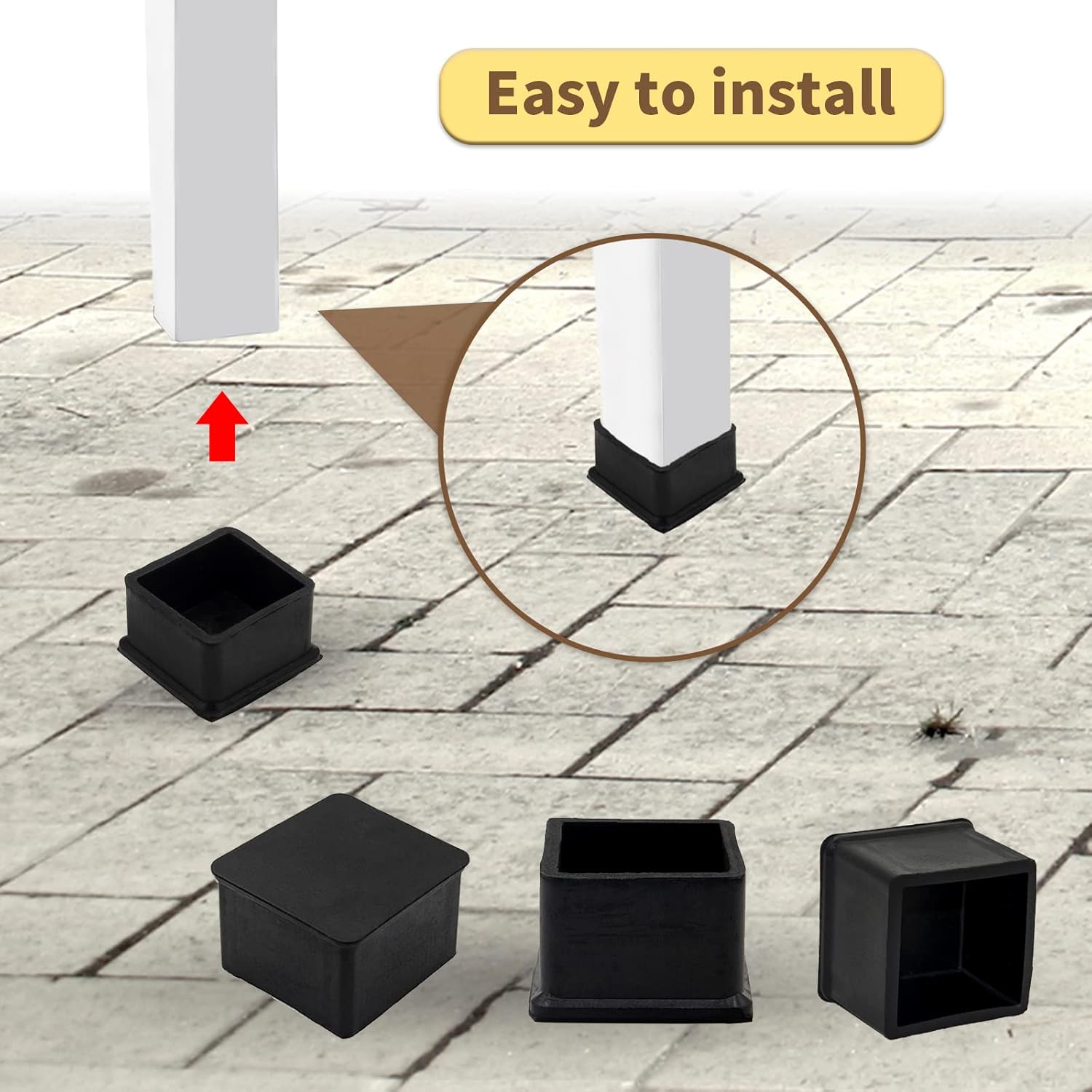 Flyshop Non-Slip Thick Rubber Leg Tips Floor Protectors Square Chair Leg Caps 38 x 38 mm, 1-1/2" x 1-1/2", Black, 20PCS