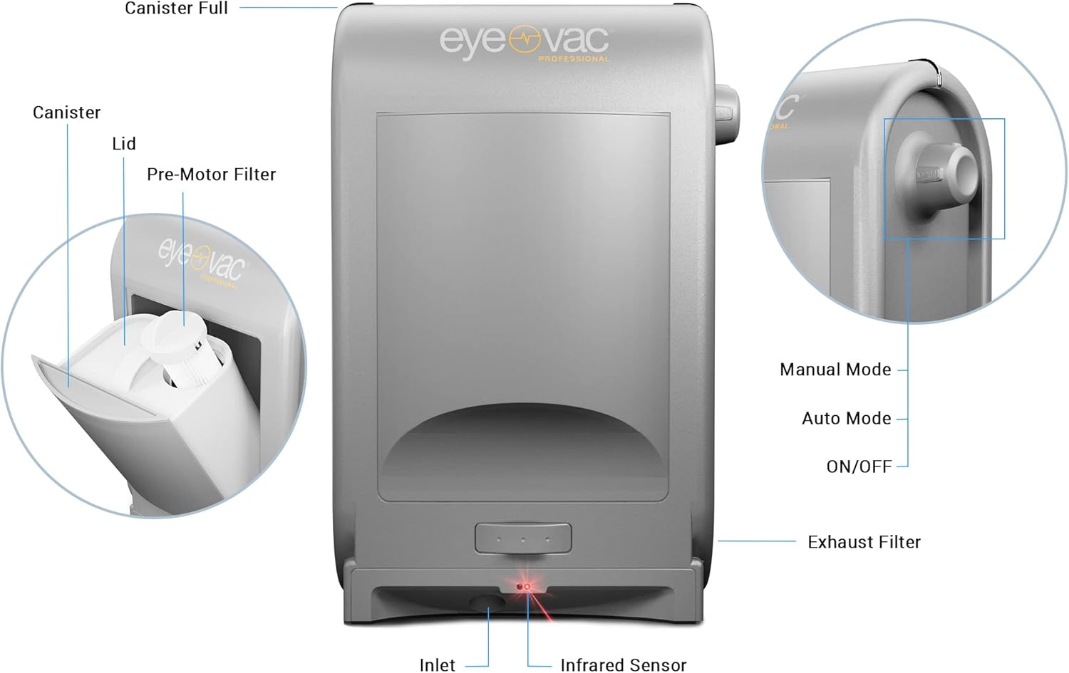 • CONVENIENT: always on and always ready infrared sensors activate Eye Vac automatically