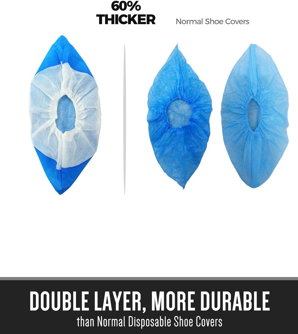 • ✅ EXTRA HEAVY DUTY MADE: In order to make the disposable shoe covers as durable as possible, we used heavy duty material, which is more than 60% thicker than others, and improved the manufacturing process, such as strengthening the rubber band. They can better suitable for working long hours, such as cleaning, nursing or farm working.