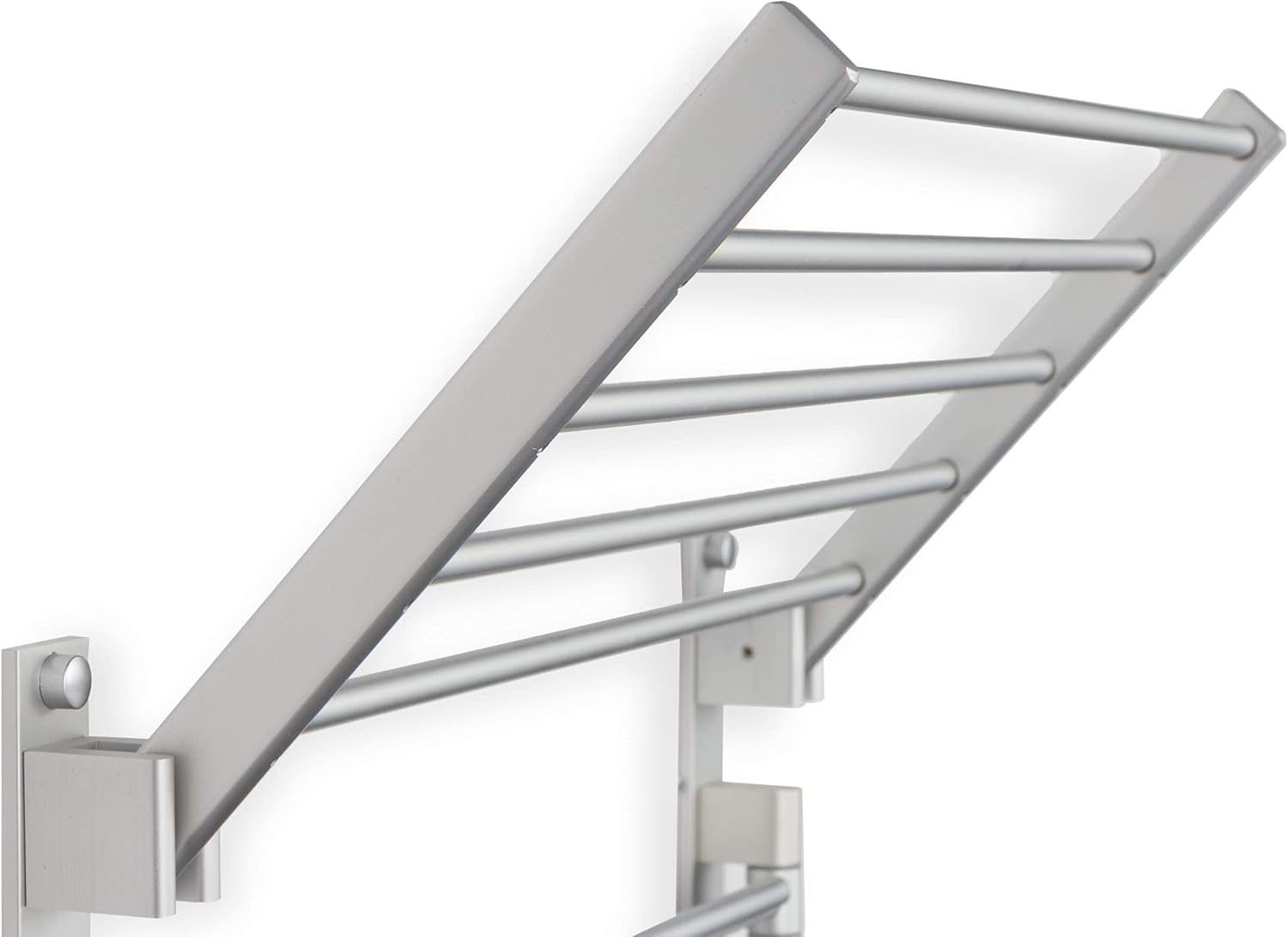brightmaison BGT Wash Clothes Drying Rack Wall Mount Laundry Room Organizer with Hooks & Swing Arms, 17" Metal Laundry Rack Silver
