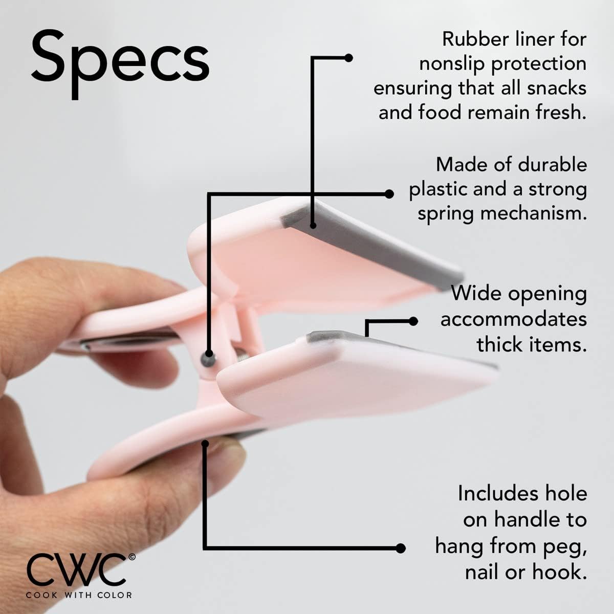 • Bag clips are one of those things you never have enough of; Invest in a set of durable, long lasting, soft touch, kid friendly Cook with Color food bag clips and organize your home and office with a colorful set of spring clips