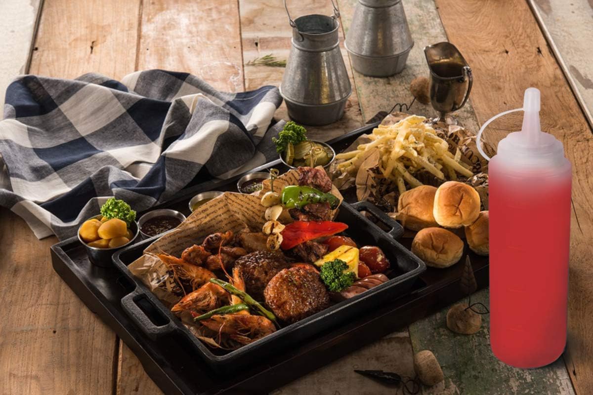 • No-leak Lids: Bbq sauce squirt bottles come with a leak-proof, removable lid that is attached to the bottle neck. You can cap it directy after using it.