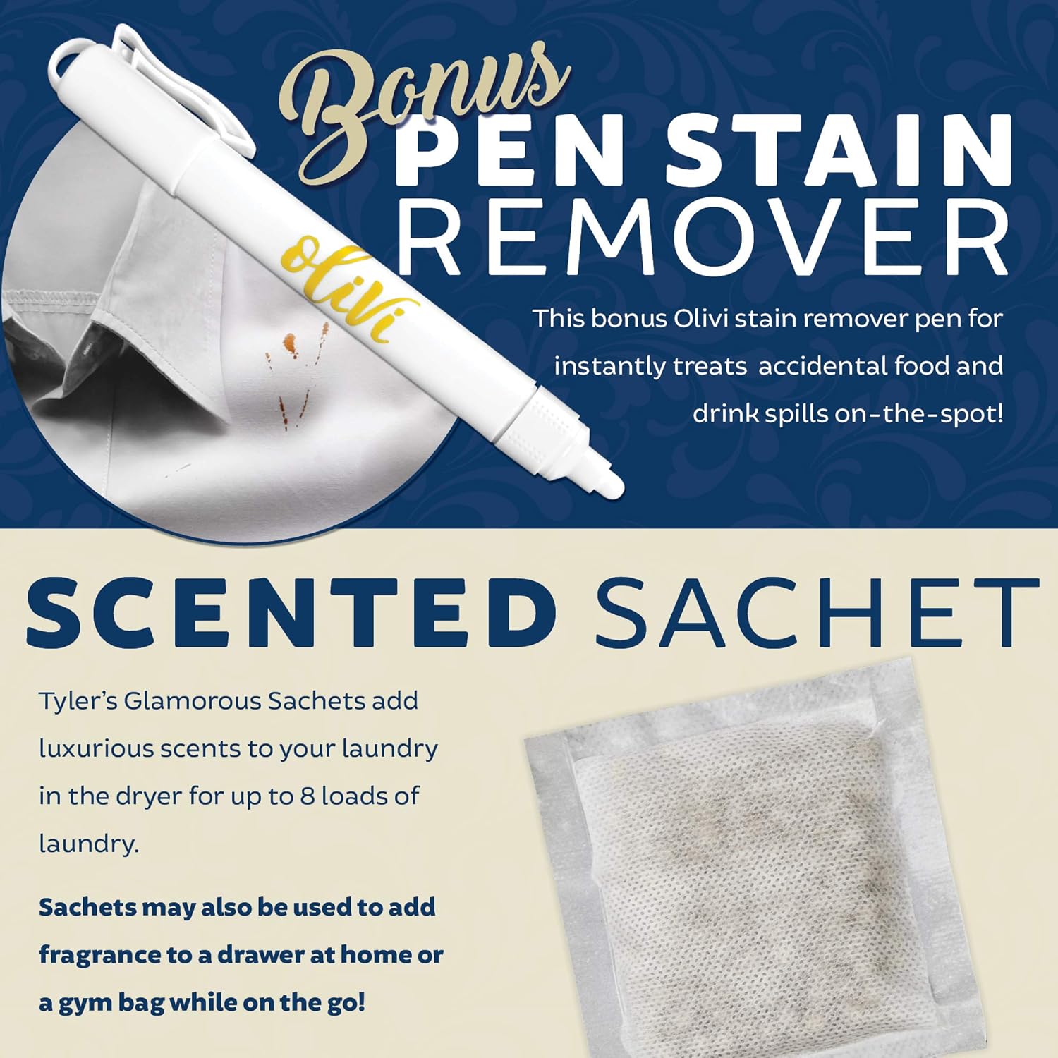 Tyler DIVA Glamorous Wash Laundry Detergent - 1 Gallon - With Olivi Stain Remover Pen - Fresh Scented Sachet - Laundry Detergent For Washing