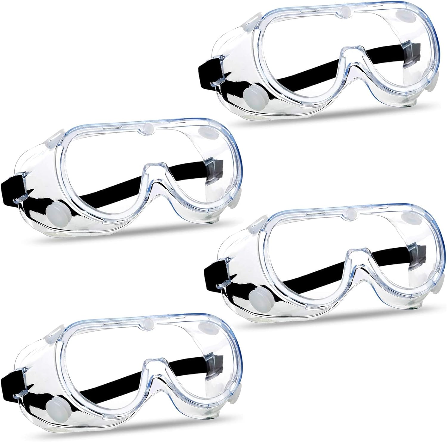 Super More 4PCS Anti-Fog Protective Safety Goggles Clear Lens Wide-Vision Adjustable Chemical Splash Eye Protection Soft Lightweight Eyewear
