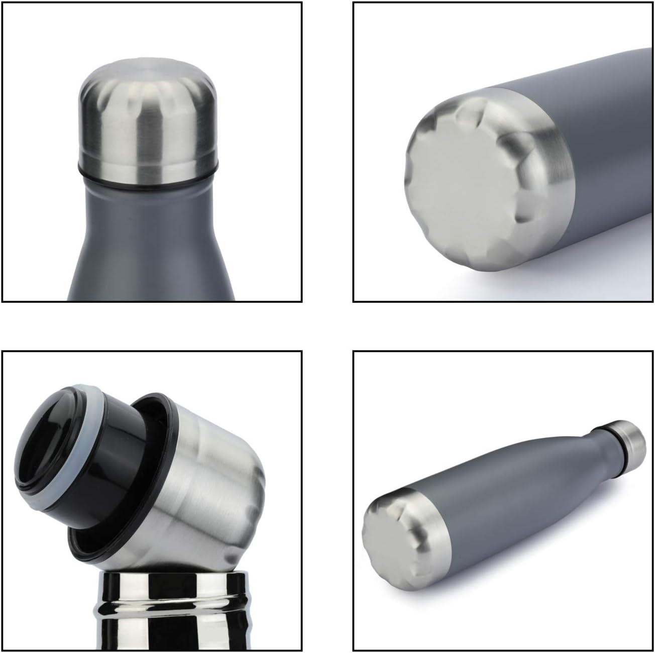 • NO LEAKS:The travel water bottle comes with a leak proof, insulated,NO BPA and Phthalates cap. The stainless steel lid will prevent any accidental spills. This multifunctional water bottle is easy to grab, while you are on the go