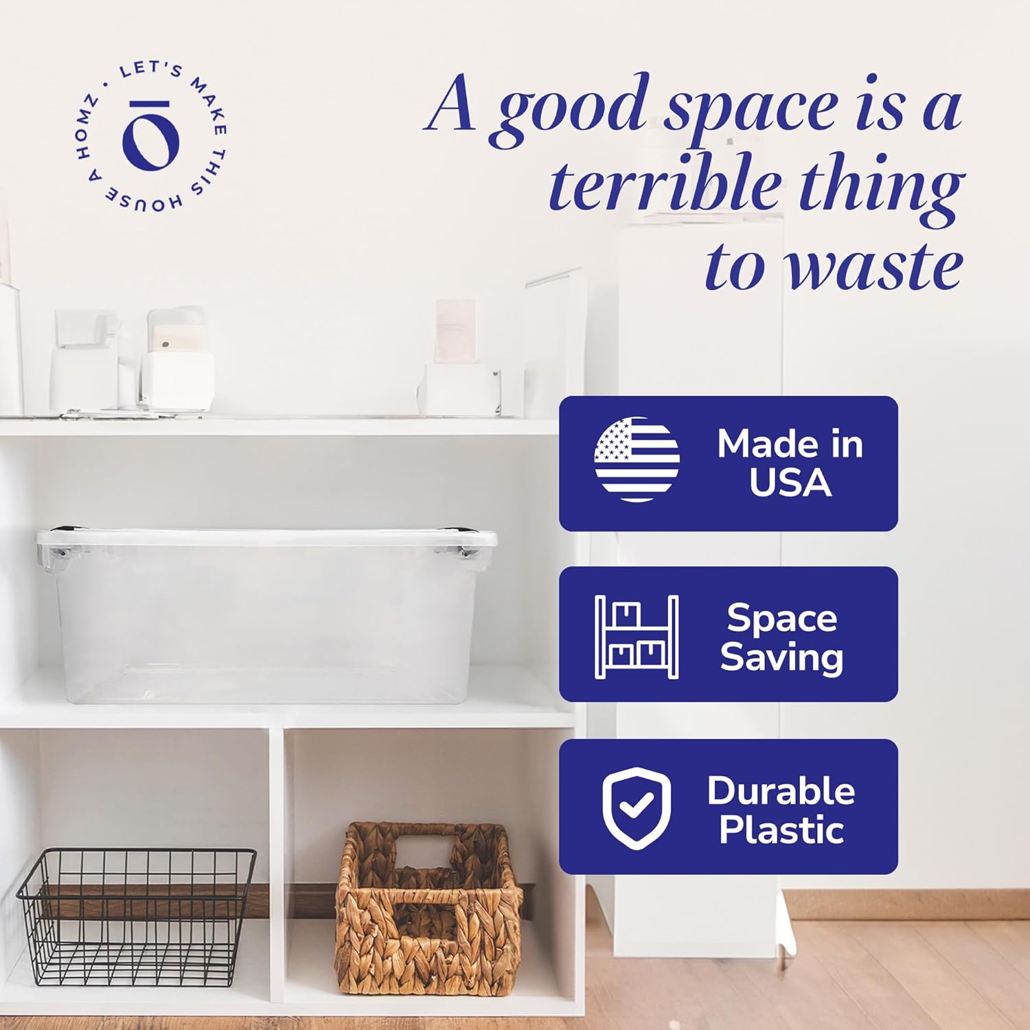 • No Wasted Space: Our set of plastic totes fits perfectly into any room. Keep your treasures safe with our locking sides and locate your items in a snap with clear sides