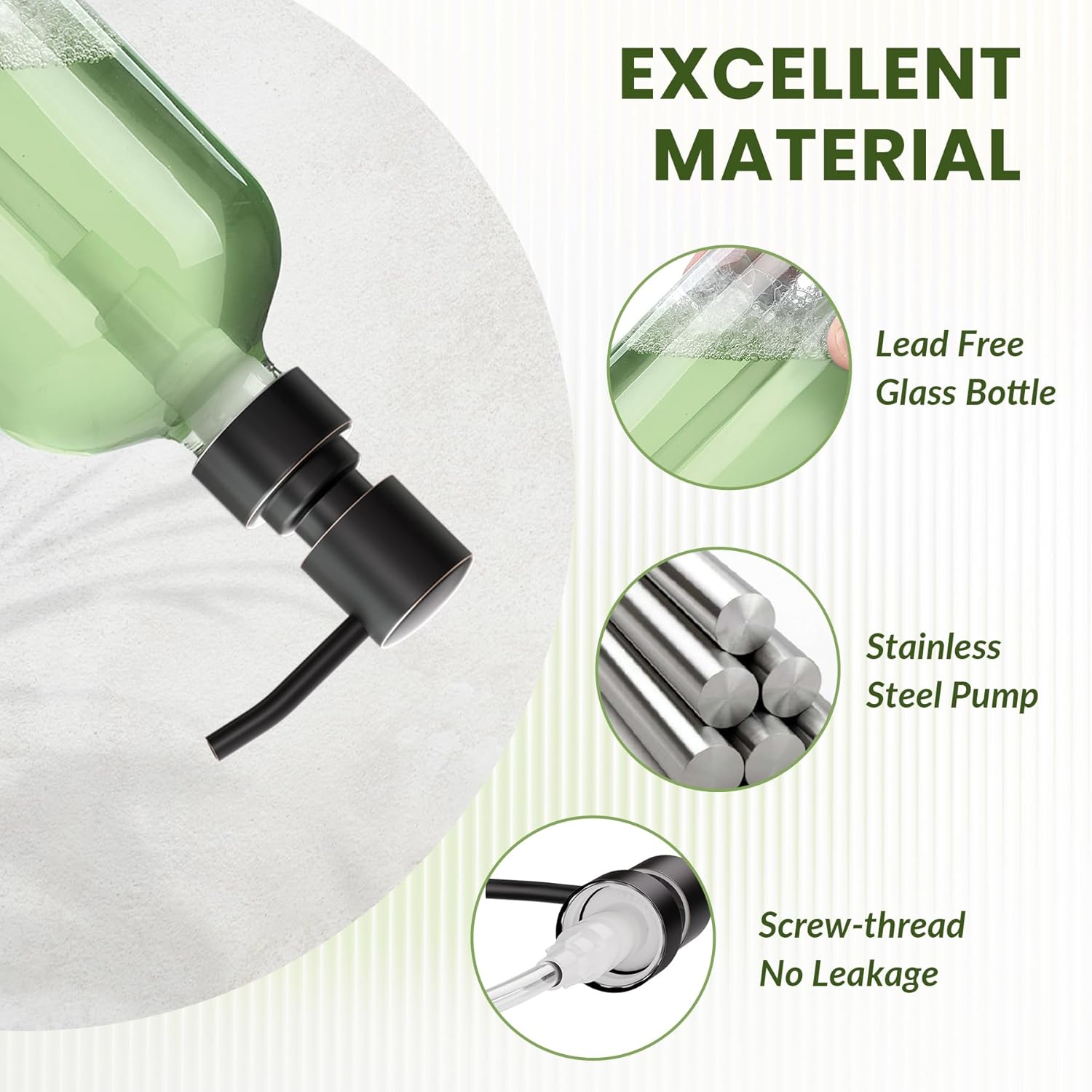 • Premium bottle material: Set of 2 thick clear glass dispensers are made of lead-free glass & pump, which can be safely used as dish soap dispenser for kitchen sink or lotion hand soap container for bathroom.