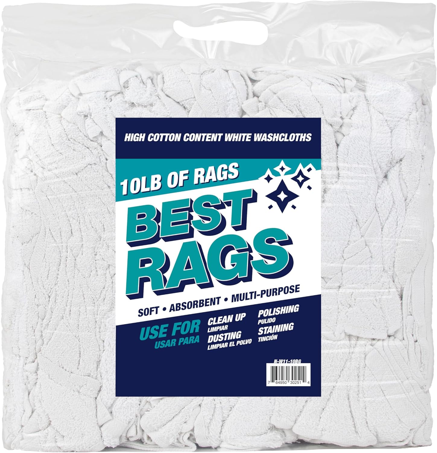 • PREMIUM QUALITY TERRY CLOTH RAGS: All terry washcloth rags are made from cotton and poly-cotton material. All around, these are great all-purpose and high-quality wiping rags. Cotton rags provide superior lightweight absorbency.