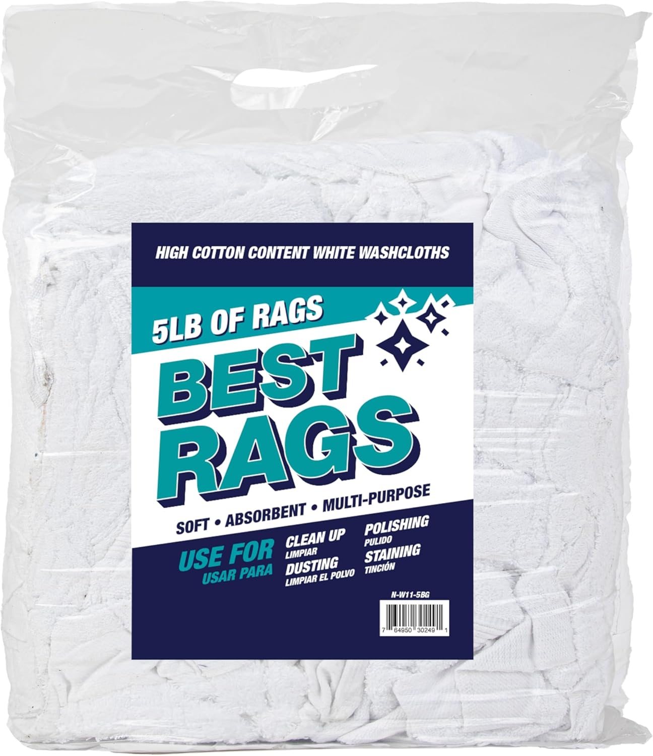 • PREMIUM QUALITY TERRY CLOTH RAGS: All terry washcloth rags are made from cotton and poly-cotton material. All around, these are great all-purpose and high-quality wiping rags. Cotton rags provide superior lightweight absorbency.