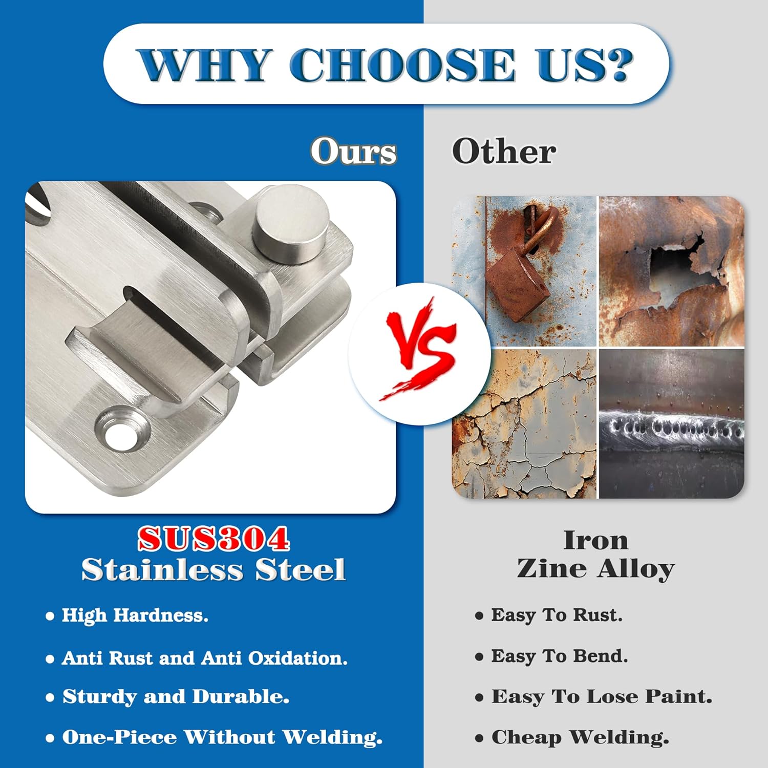 • 【Hand Brushed Finished】The latch lock is finished by hand fine polishing brushed, with smooth and pure surface, retaining the most original beautiful stainless steel color, which can resist daily scratches and corrosion