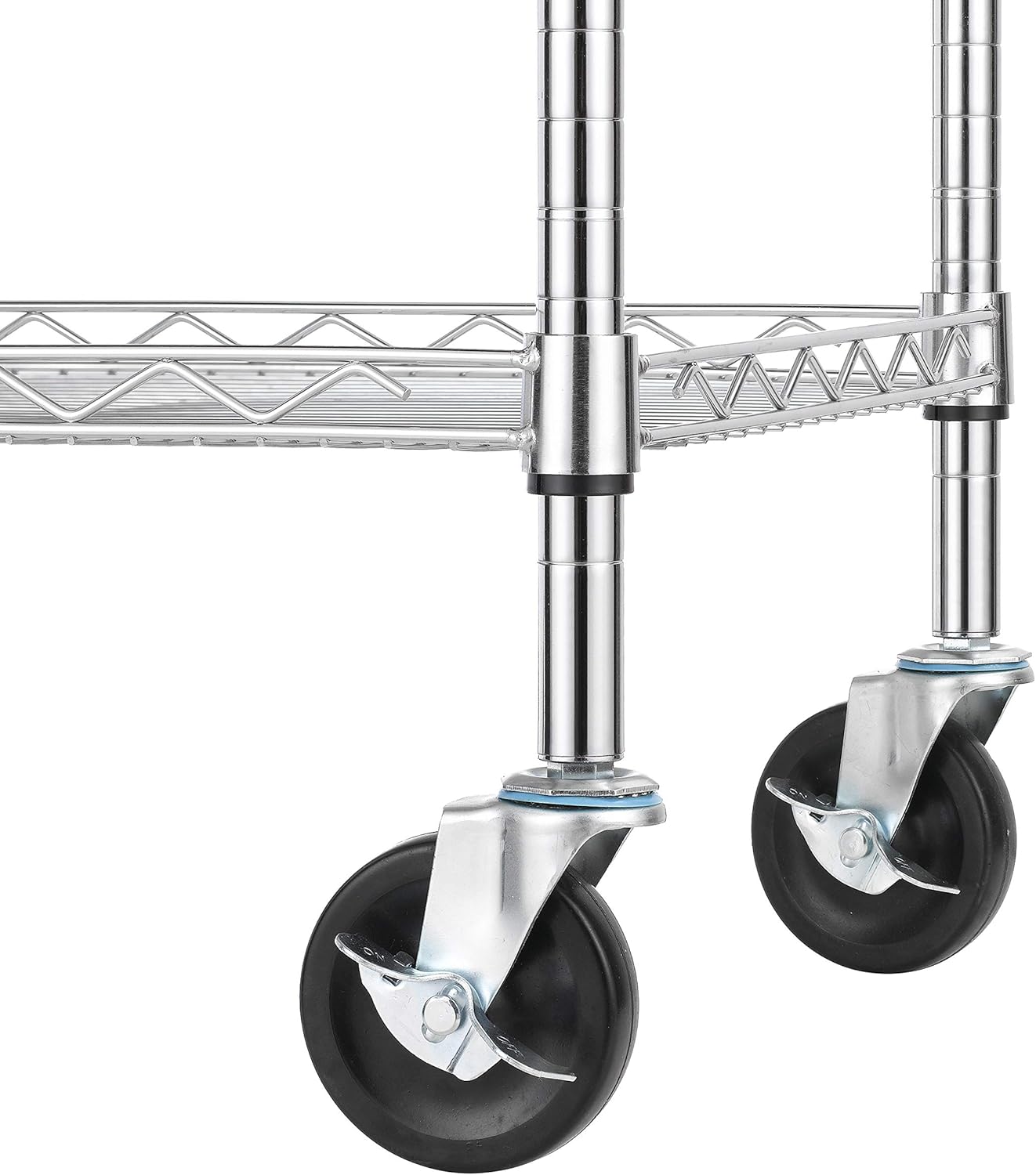 • STURDY CONSTRUCTION - This Rolling Utility Cart is constructed from industrial-strength steel, and equipped with 1 inch diameter poles. Can hold up to 500lbs on wheels.
