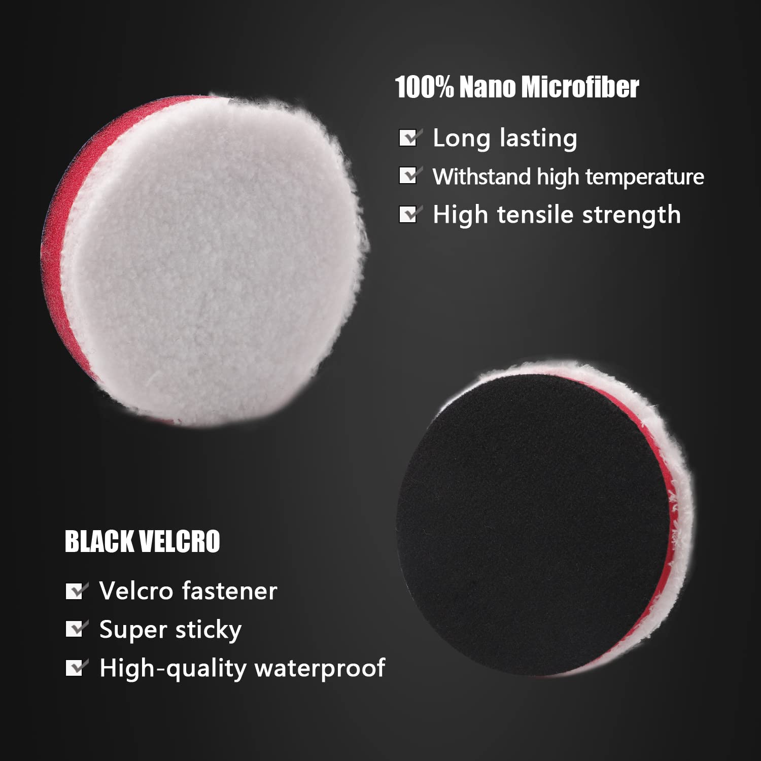 • 【PACKAGE INCLUDE】15pcs 3 inches sponge polishing pads, 1pc 3 inches 5/8-11 thread backing plate, 1pc 3" woolen buffer pad, 1pc 3" microfiber buffing pad, 1pc 5/8-11 thread drill adapter, 1pc multi-functional pads cleaning brush.