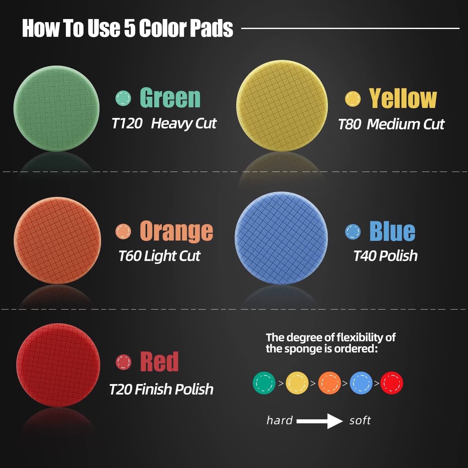 • 【NOTES】All sponge polishing pads should be cleaned and leveled before use to ensure that there are no particles left. After use, polishers should be cleaned immediately and dried in a cool place.