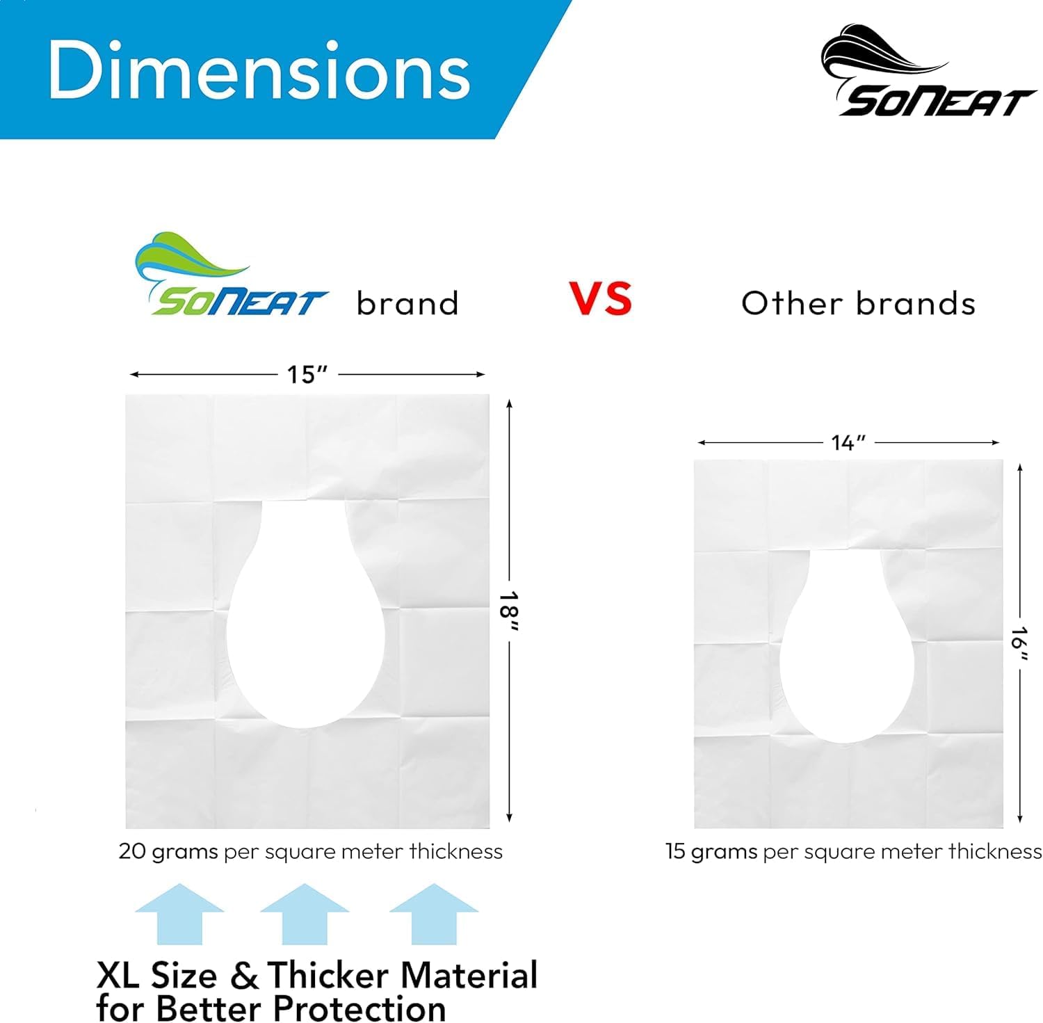 • XL Full Coverage - Toilet seat covers disposable flushable XL provide 18x15” coverage for adults & kids. Stay clean in public restrooms, airplanes, camping trips & festivals with reliable hygiene protection.