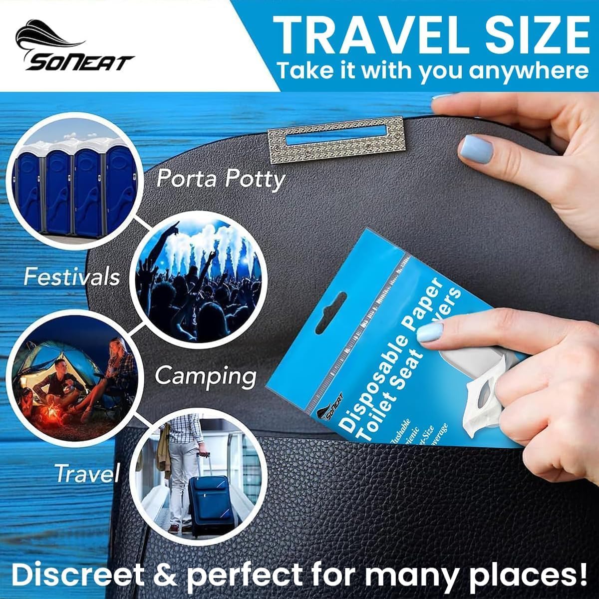 • Easy to Use & Durable - Each toilet cover seat unfolds smoothly for quick setup & disposal. Stronger than flimsy paper liners, these disposable seat covers for toilet stay in place—trusted travel hygiene protection.