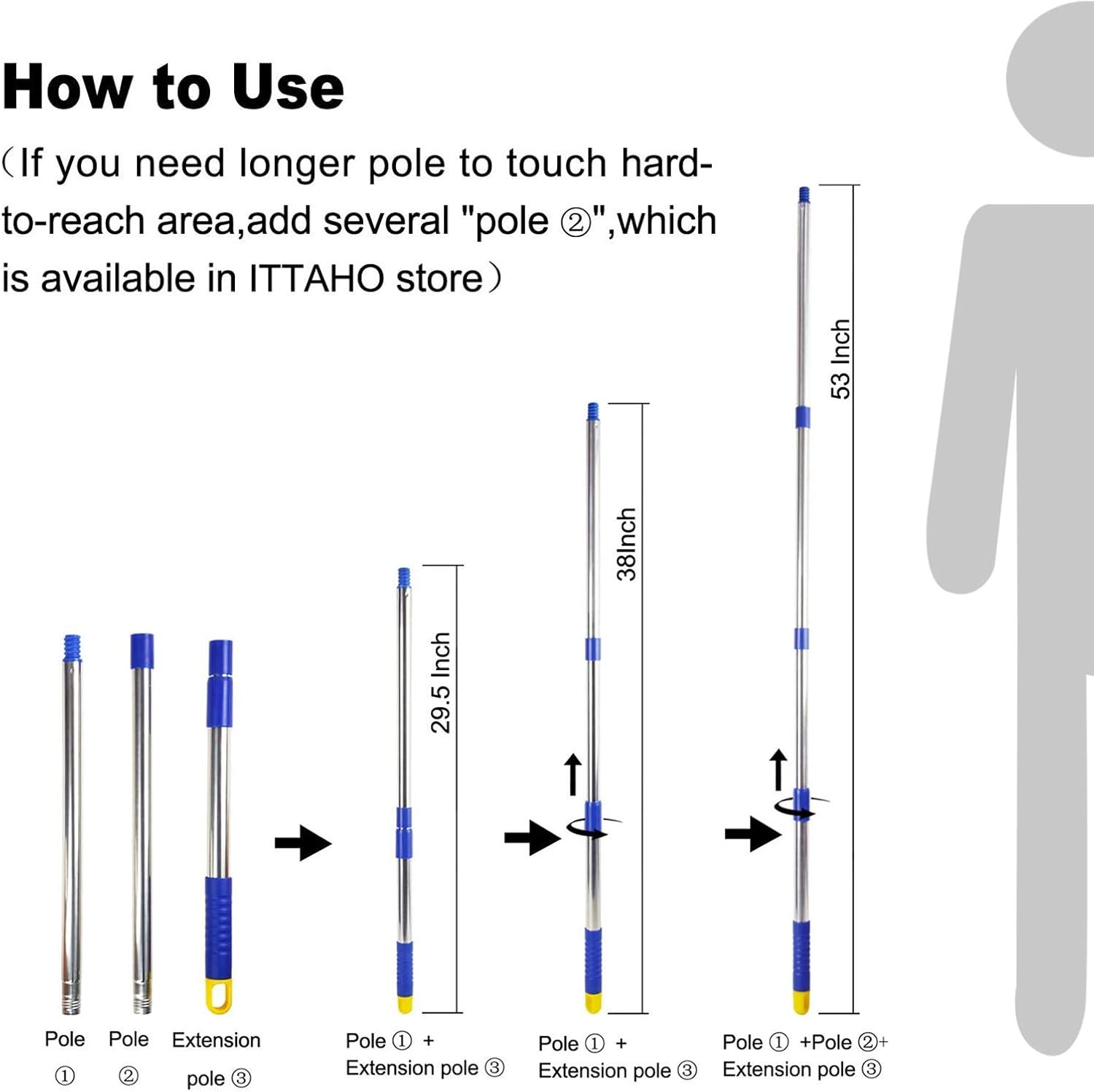 • ITTAHO Excellent Customer Service:What you get: 1 x ITTAHO Scrub Brush, 3 x Stainless Steel Pole, 1 x Small Cleaning Brush. We,ITTAO deck scrubber are committed to meeting customer demands to supply high quality household cleaning products. Please feel free to contact us at any time if you have any problem,suggestion and request with ITTAHO products ,we will reply you within 24 hours