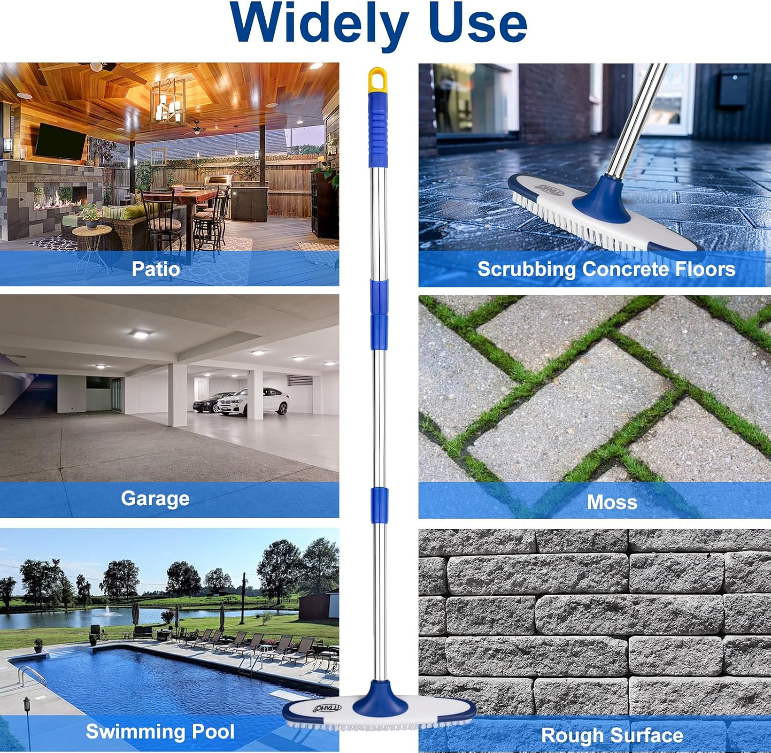 • Durable Stainless Steel Handle: The stainless steel handle can be removed and attached to the floor brush head, you can adjust handle length to 51.8 Inch.Easily scrubbing hard to reach high areas,scrubbing the bathroom tile and floor without being on hands and knees.The powerful deck scrub brush is ideal for commercial and industrial environments, including home, hospital, hotel, office, school and more