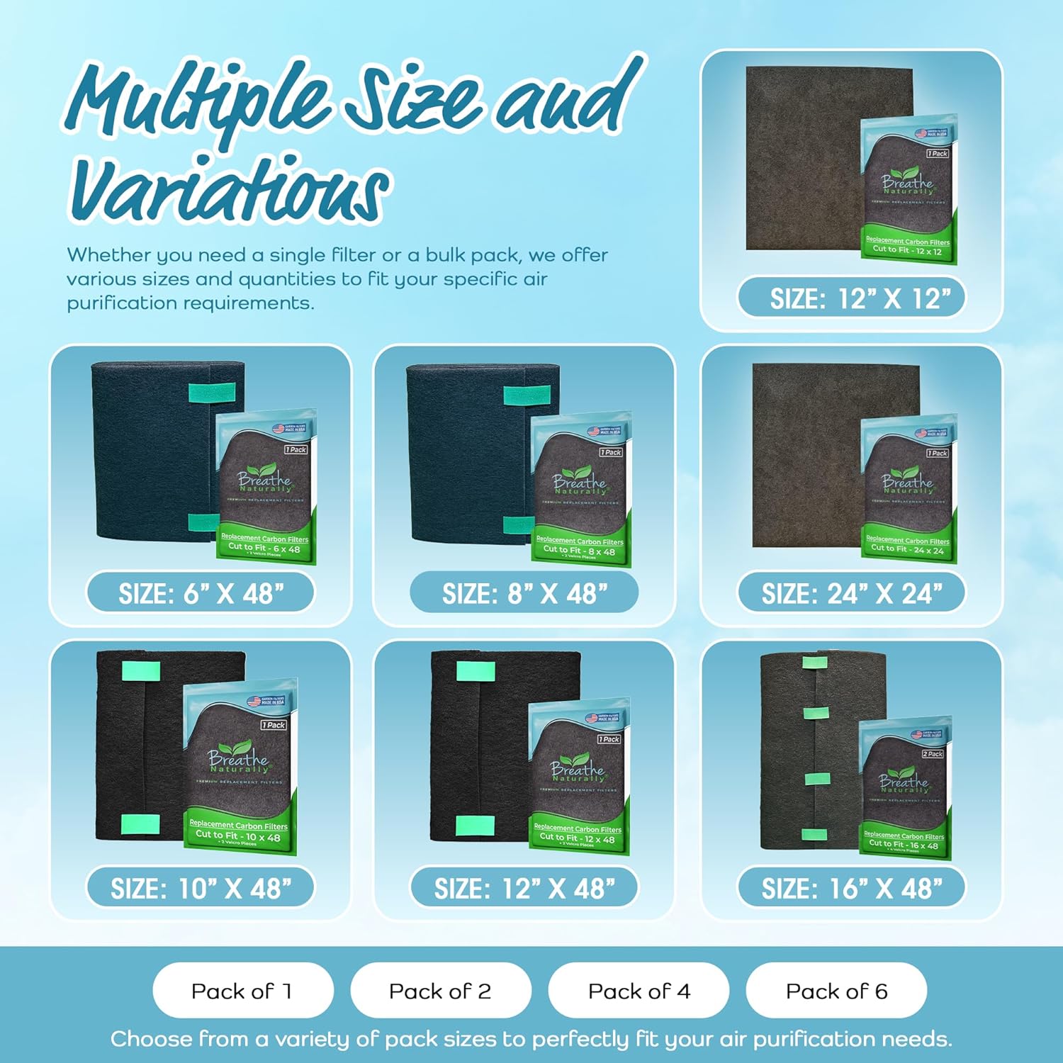Breathe Naturally Universal Cut To Fit Carbon Activated Air Filter - Replacement Charcoal Filters - Pre Filter Carbon Sheet for Air Purifier, Vent Filters & More - Made in USA (Pack of 1, 6x48)