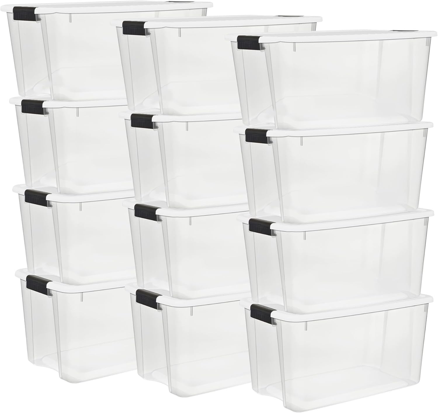 Sterilite 12-Pack Ultra Latching Box, Storage Bins with Lids, Clear Plastic, 70 Quart - Heavy-Duty Organizing Containers for Closet, Bathroom, and Office