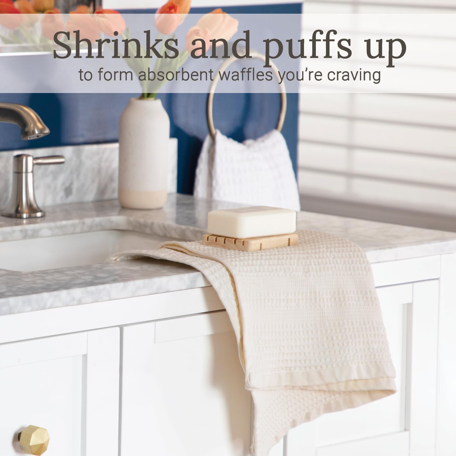 • Super Absorbent Hand Towels: Made from thirsty high quality cotton, they shrink to form small honeycomb waffles that quickly wicks away moisture while providing a cozy, comfortable feel for drying hands.