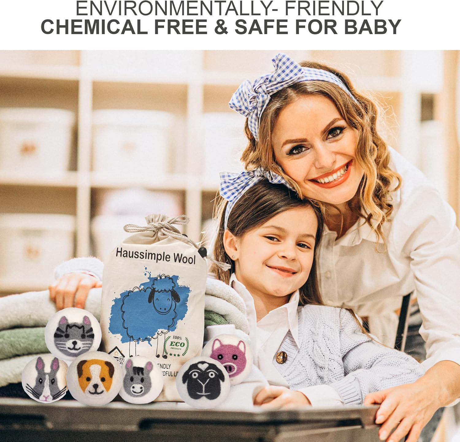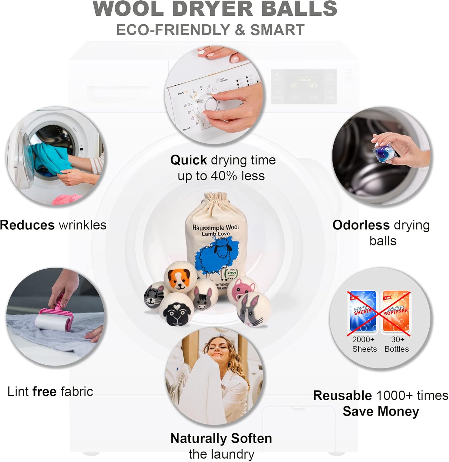 Wool Dryer Balls โ€“ 6-Pack XL Organic Fabric Softener | Natural Handmade Sheep Wool | Reusable, Anti-Static, Lint & Wrinkle Remover | Safe for Baby & Sensitive Skin (Farm)